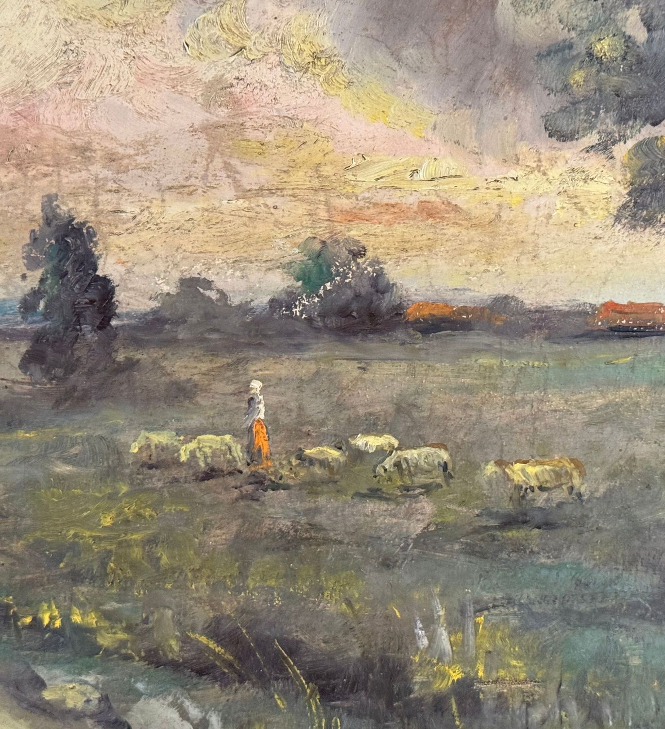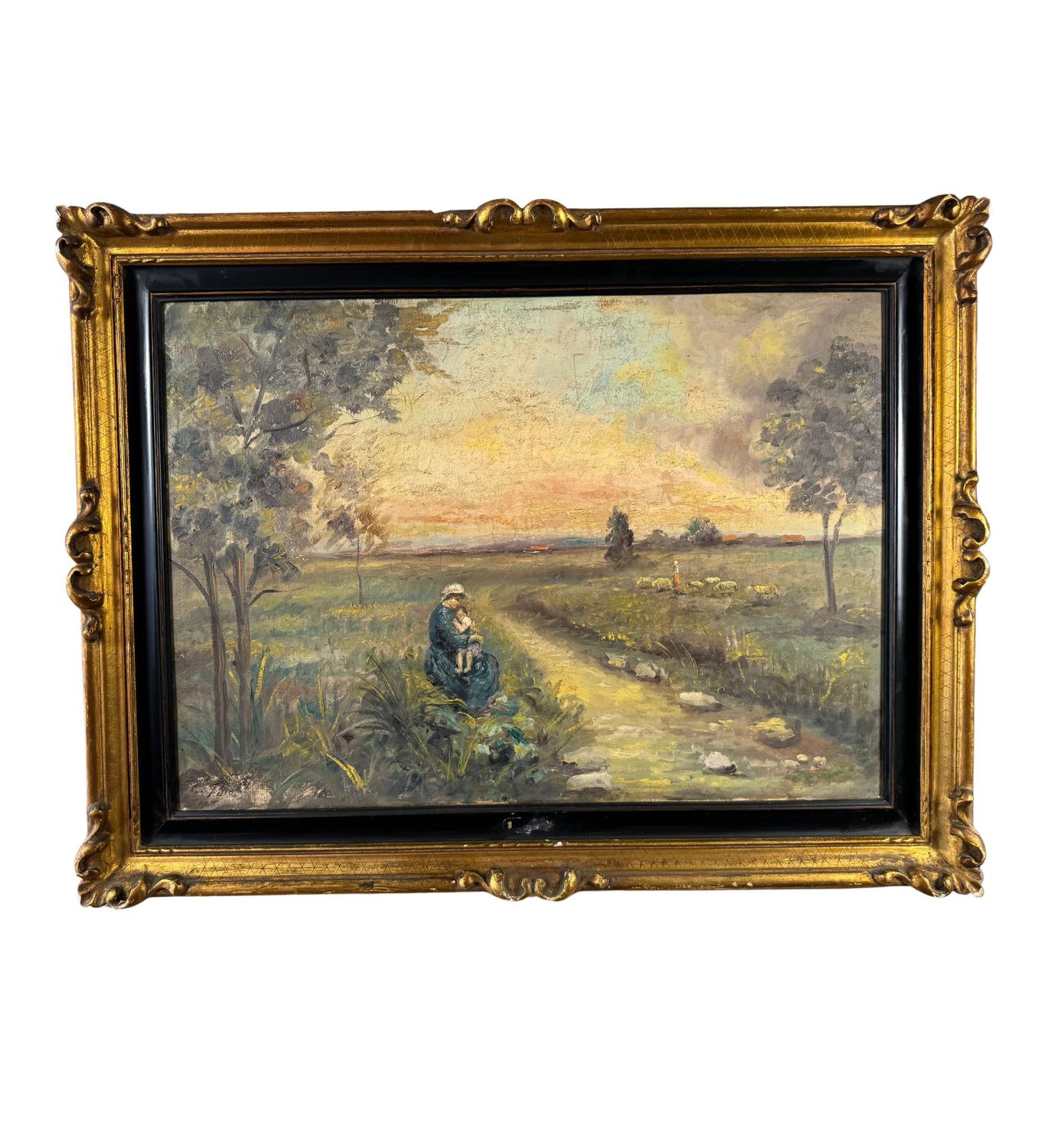 Dipinto olio su tela, periodo inizio XX secolo scuola Italiana, raffigurante Paesaggio di campagna con personaggio. Dimensioni compreso cornice: 86x67 cm. Dimensioni interno cornice: 70x50 cm. Da artista anonimo. Opera in buone condizioni con lievi segni di vissuto come da foto allegate.
