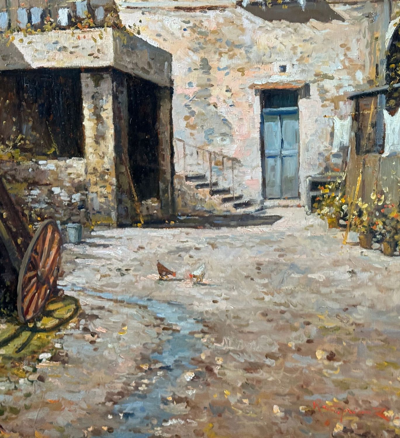 Dipinto olio su tela, periodo XX secolo scuola Italiana, raffigurante Vecchi casale. Dimensioni compreso cornice: 65x85 cm. Dimensioni interno cornice: 50x70 cm. Reca firma in basso a destra da Roberto Cipriano Zuccaro. Opera in buone condizioni.