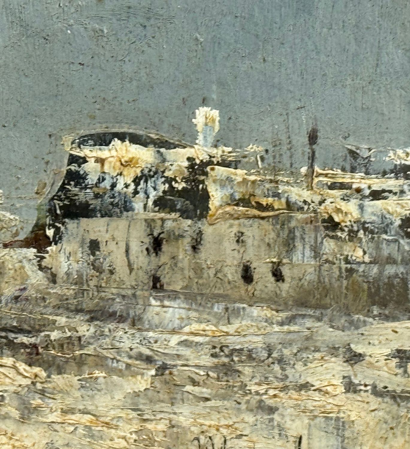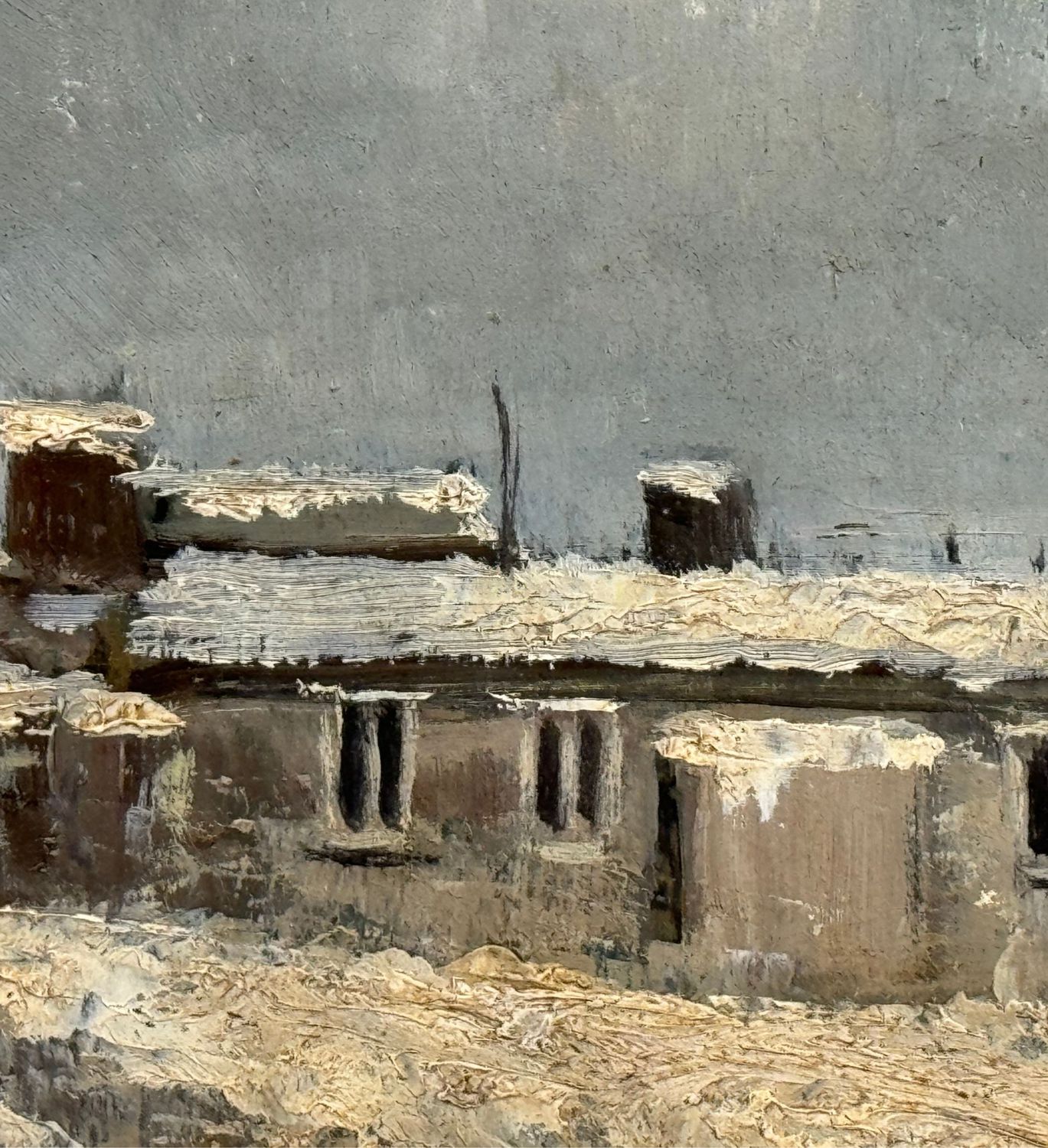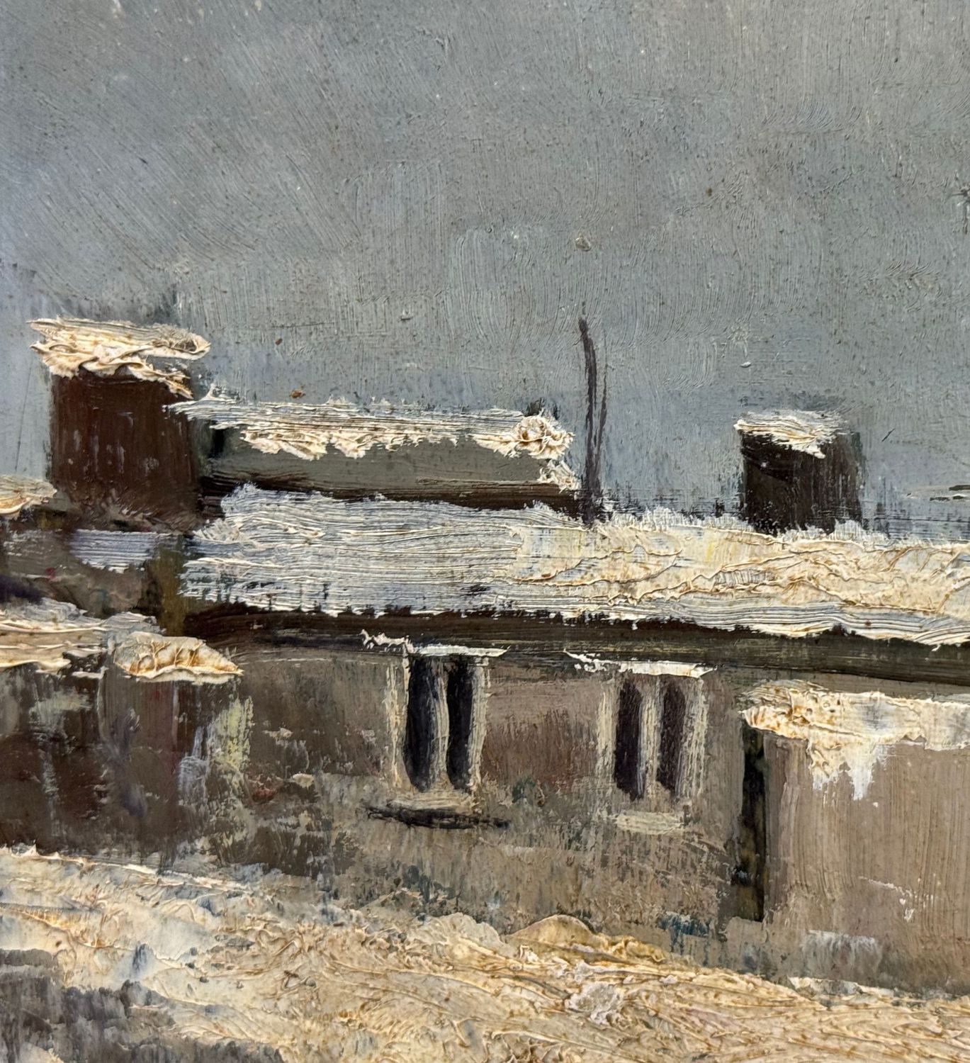 Dipinto olio su tavola, periodo primi anni del XX secolo, scuola Russa, raffigurante Paesaggio innevato. Dimensioni: 30,5x26 cm. Reca firma in basso a destra, di difficile lettura da artista non identificato. Opera in buone condizioni.