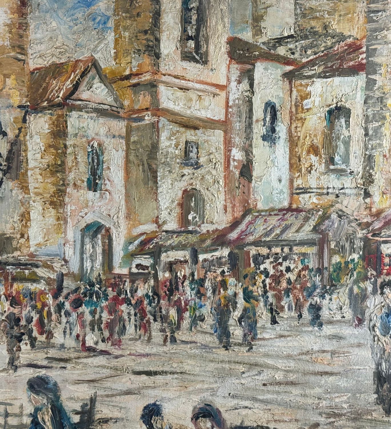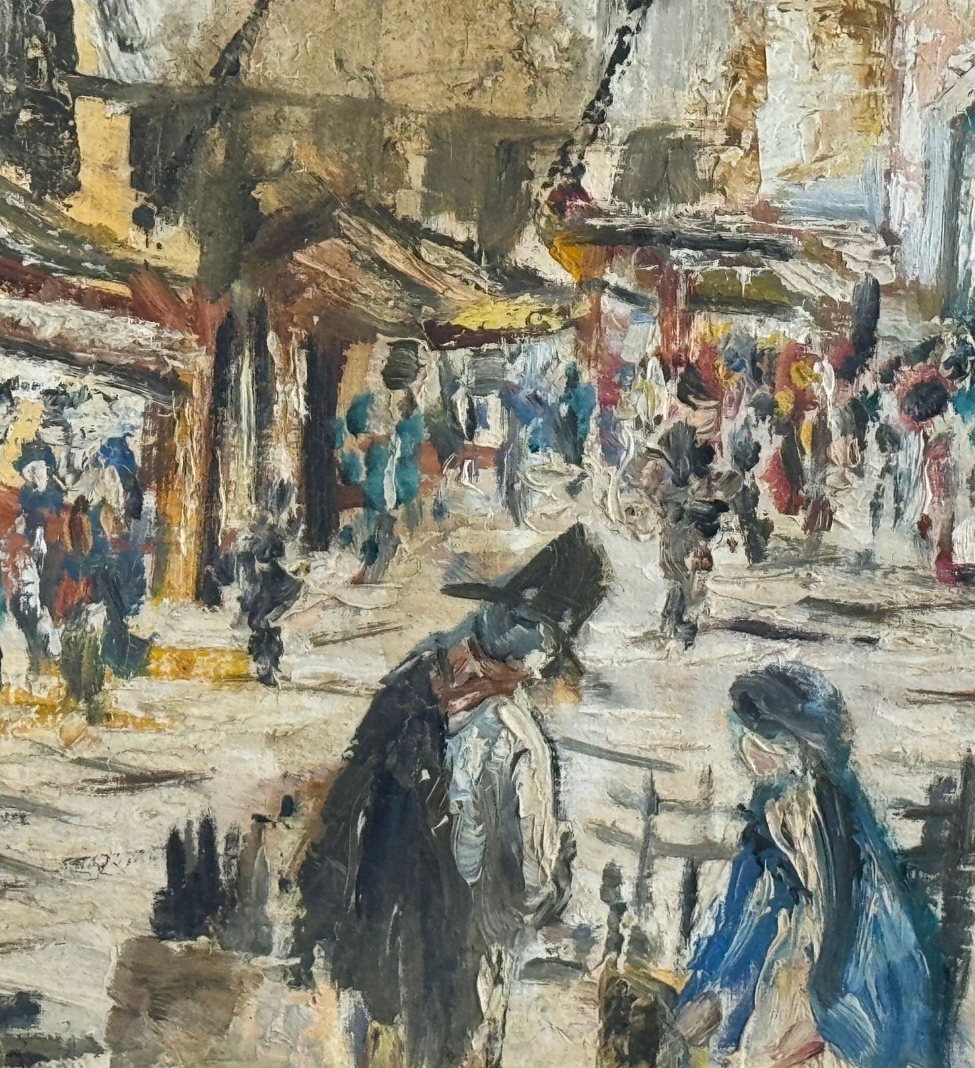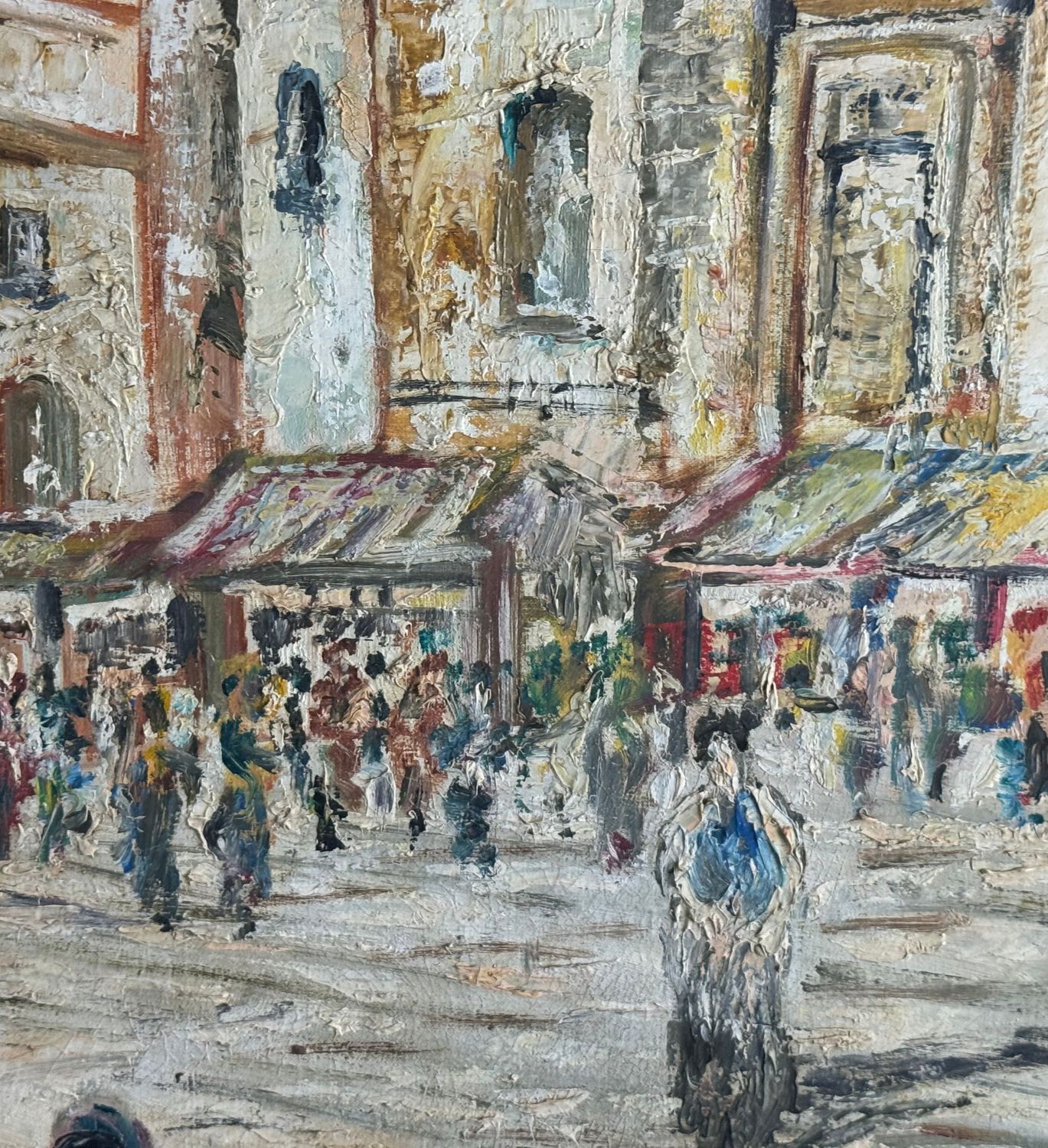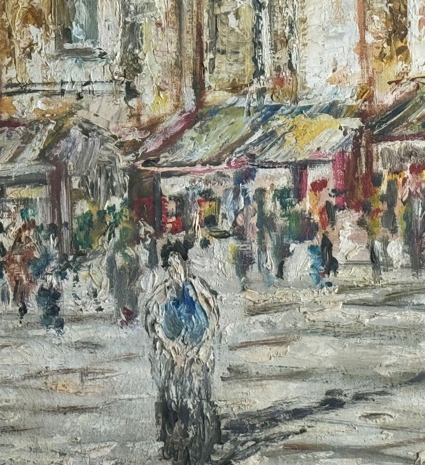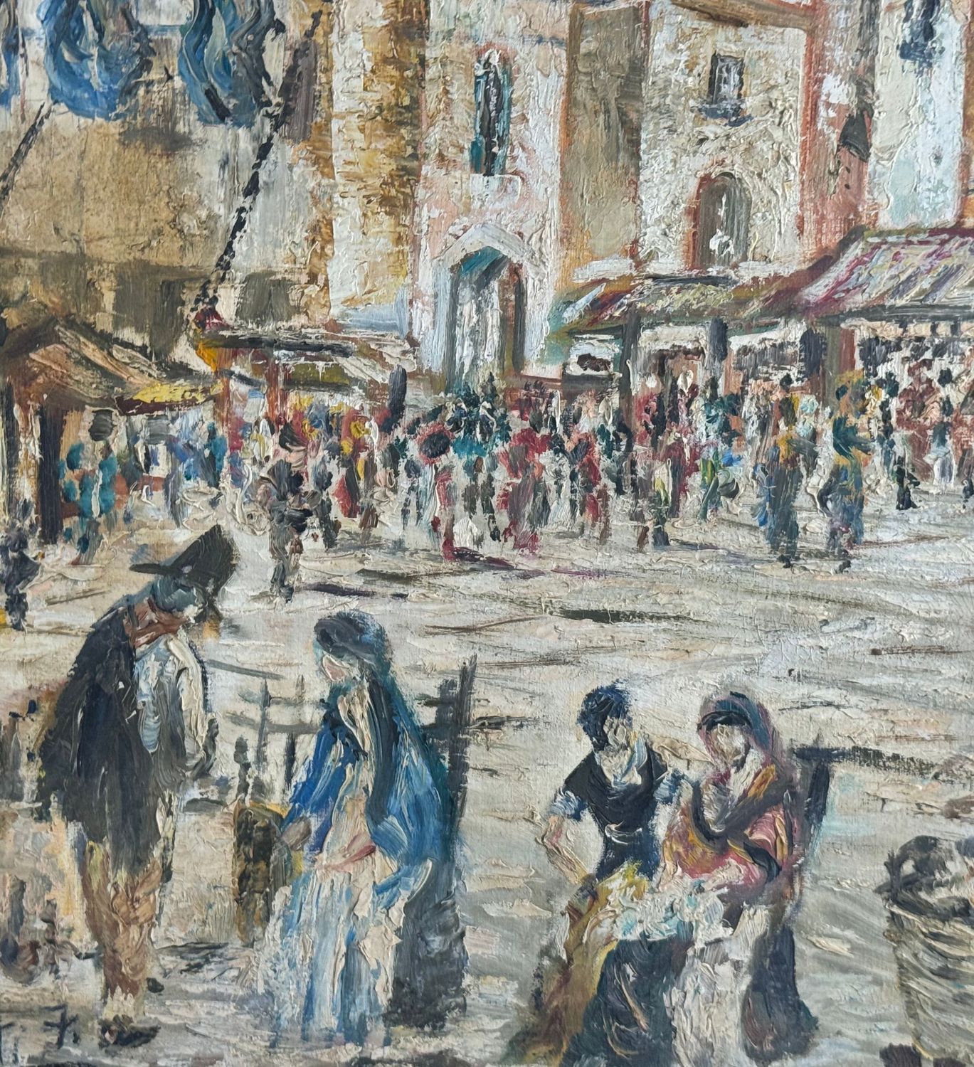 Dipinto olio su tela, periodo XX secolo scuola Italiana, raffigurante Mercato. Dimensioni: 60x45 cm. Reca firma in basso a sinistra da Lamberti Franco. Opera in buone condizioni.