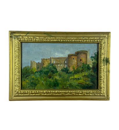 Dipinto olio su tavola, periodo XX secolo scuola Italiana, raffigurante Paesaggio con castello. Dimensioni compreso cornice: 42x28,5 cm. Dimensioni interno cornice: 34x21 cm. Reca firma in basso a destra da Angela Carugati. Opera in buone condizioni.