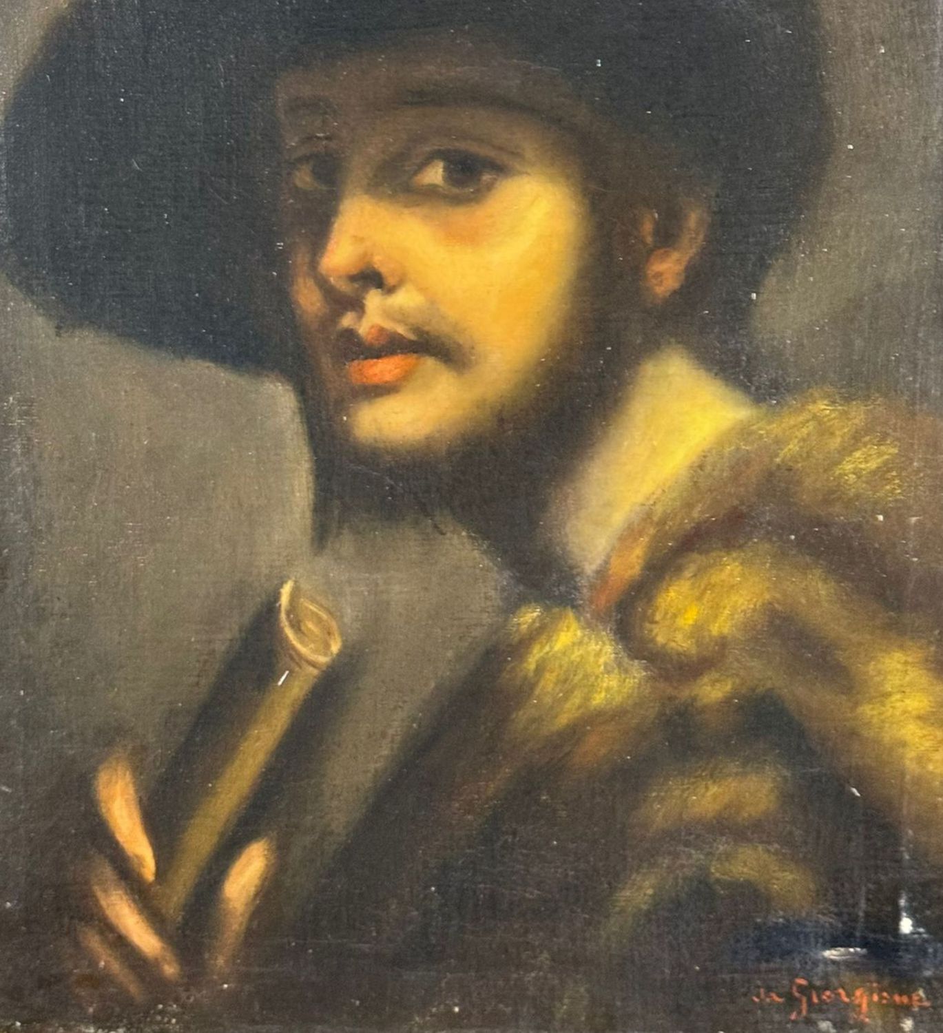 Dipinto olio su tela, periodo XX secolo scuola Italiana, raffigurante Il Pifferaio. Copia da Sebastiano Del Piombo. Dimensioni: 32x41 cm. Reca firma in basso a destra da artista non identificato. Opera in buone condizioni con piccoli segni di vissuto come da foto allegate.