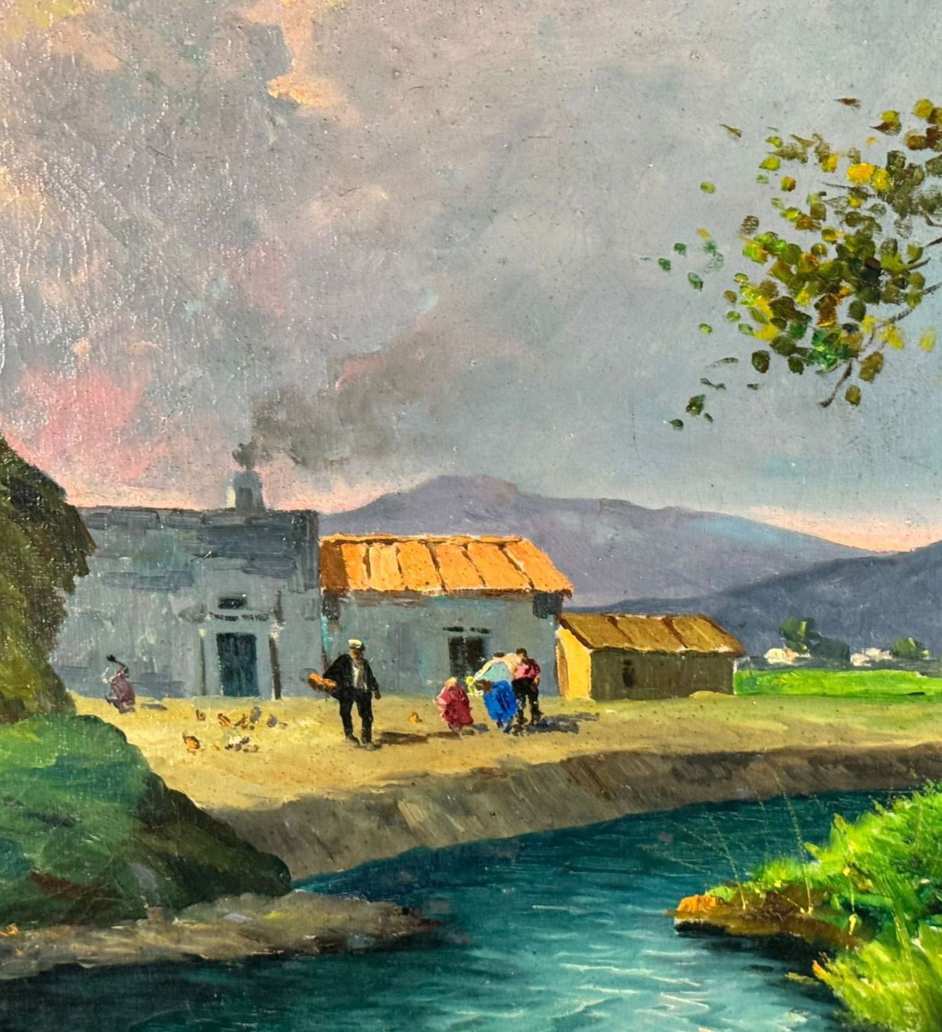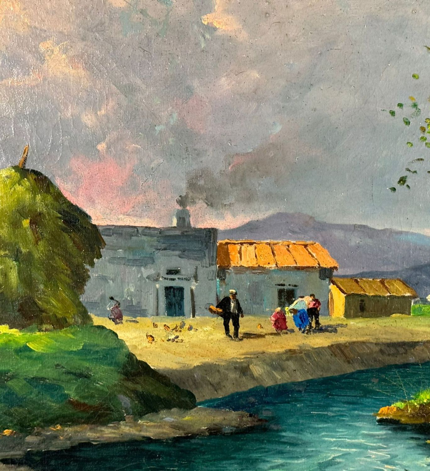 Dipinto olio su tela, periodo XX secolo scuola Italiana, raffigurante Paesaggio di campagna con contadini. Dimensioni compreso cornice: 83x63 cm. Dimensioni interno cornice: 70x50 cm. Reca firma in basso a sinistra da Leon Giuseppe Buono. Opera in buone condizioni.