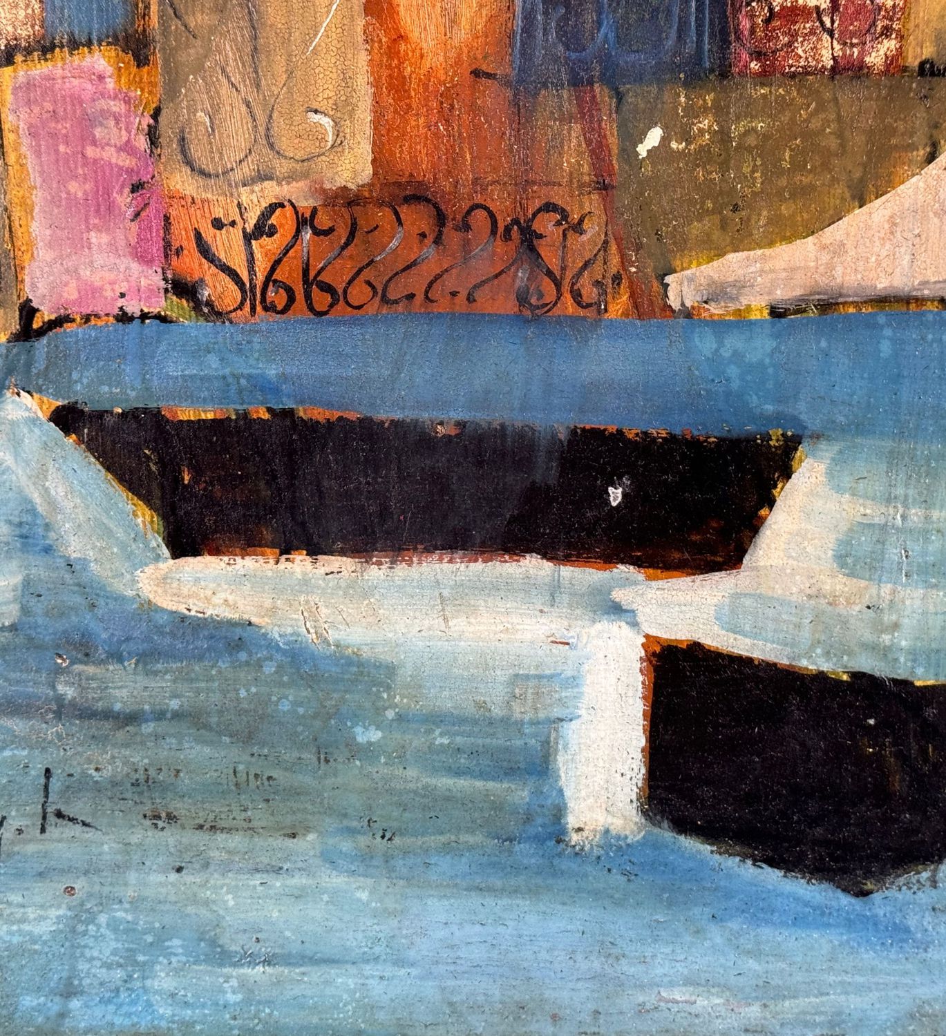 Dipinto olio su tavola, periodo XX secolo scuola Italiana, raffigurante Paesaggio astratto. Dimensioni: 37,5x47,5 cm. Reca firma in basso a sinistra da artista non identificato. Opera in buone condizioni con lievi segni di vissuto come da foto allegate.