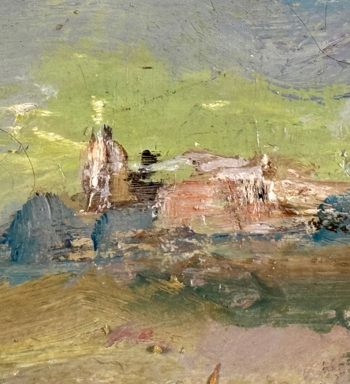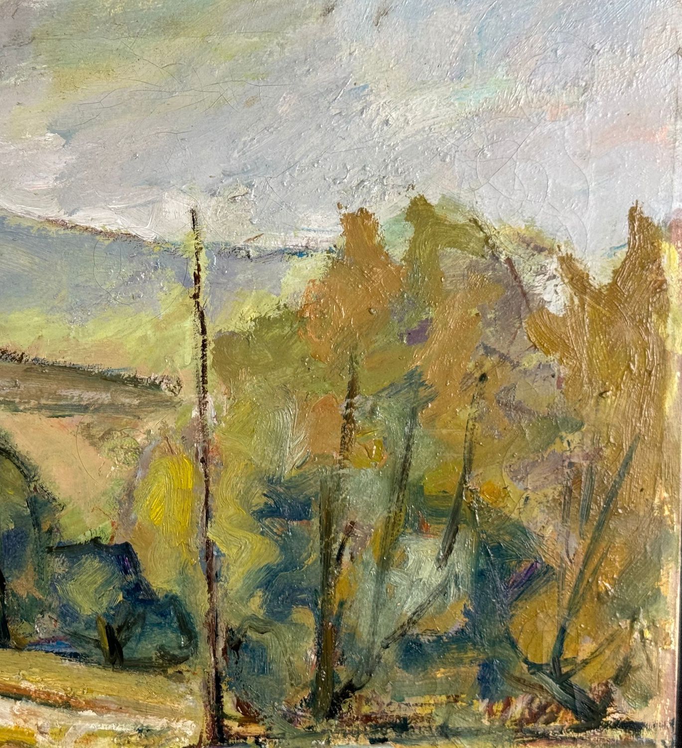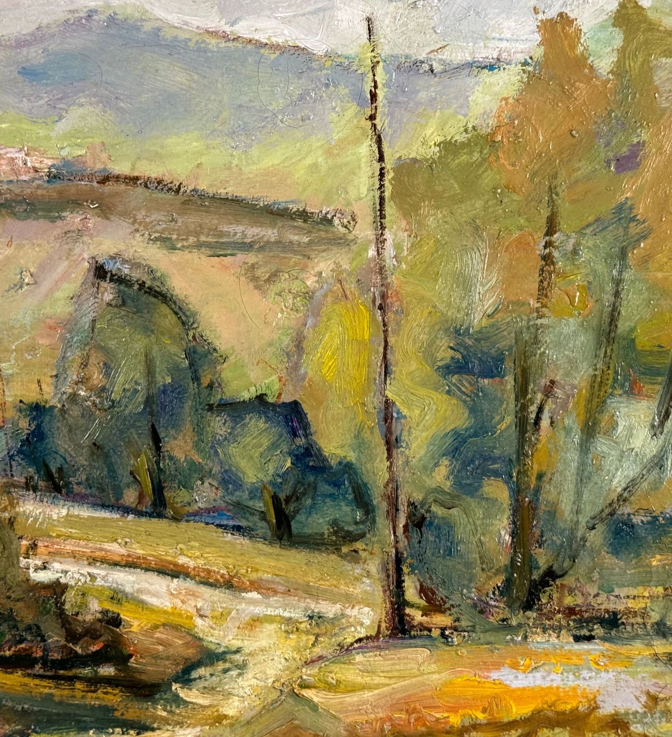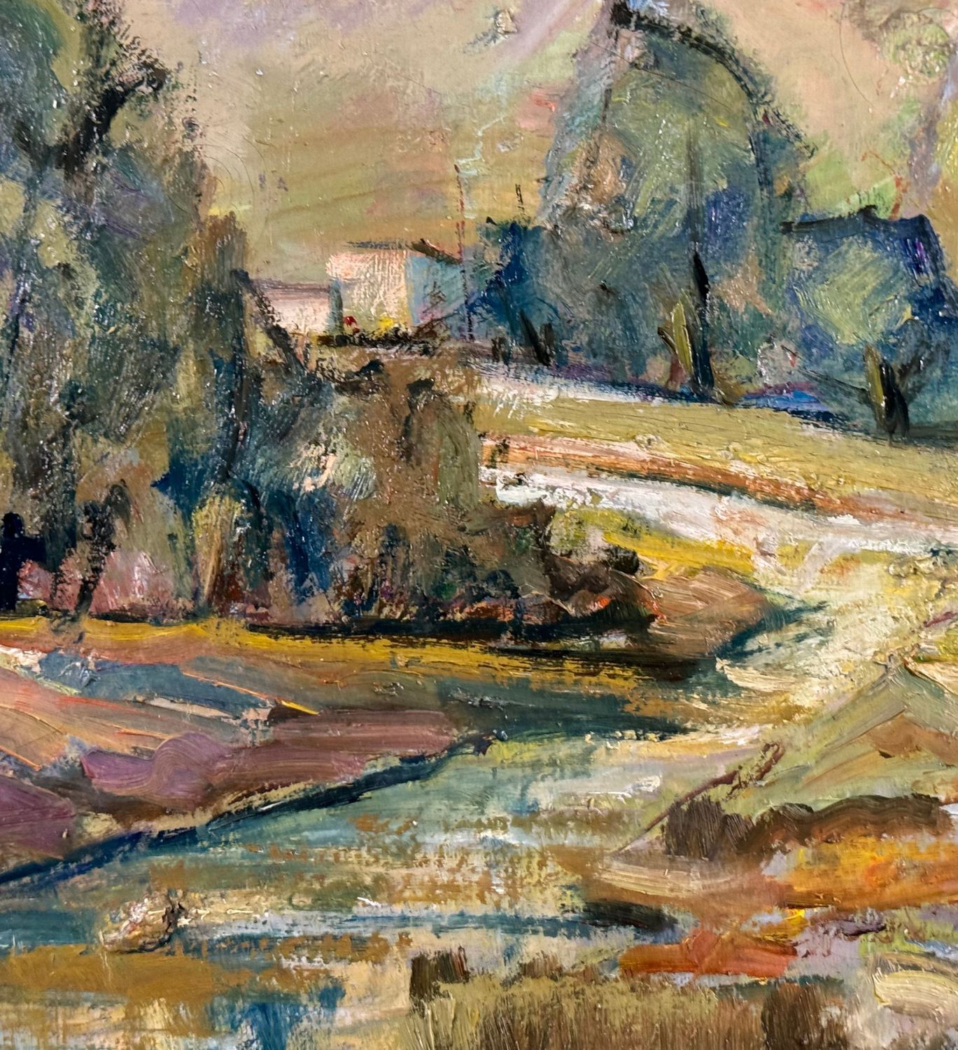 Dipinto olio su tela, periodo XX secolo scuola Italiana, raffigurante Paesaggio. Dimensioni: 50x40 cm. Reca firma in basso a destra da artista non identificato. Opera in buone condizioni.