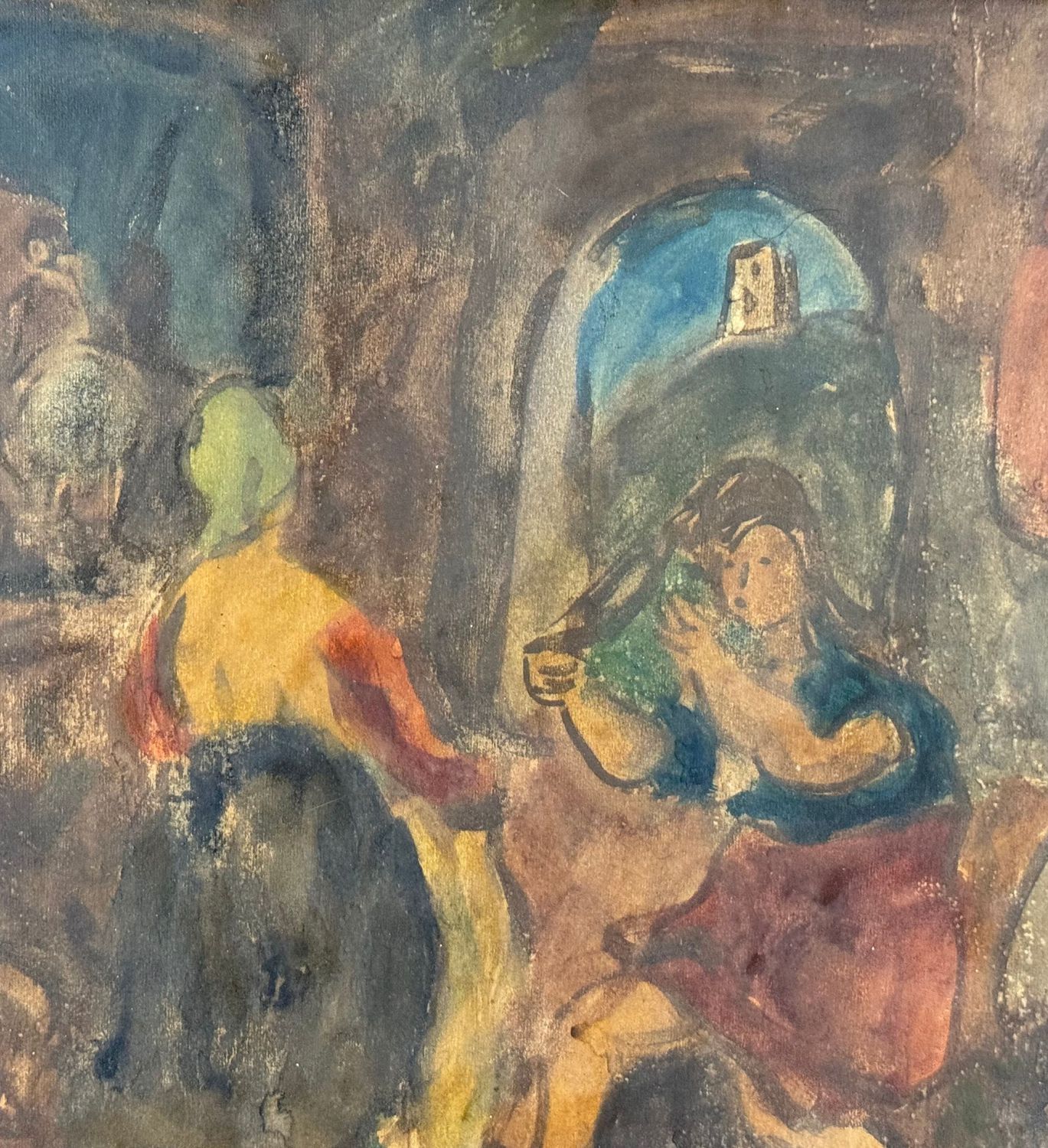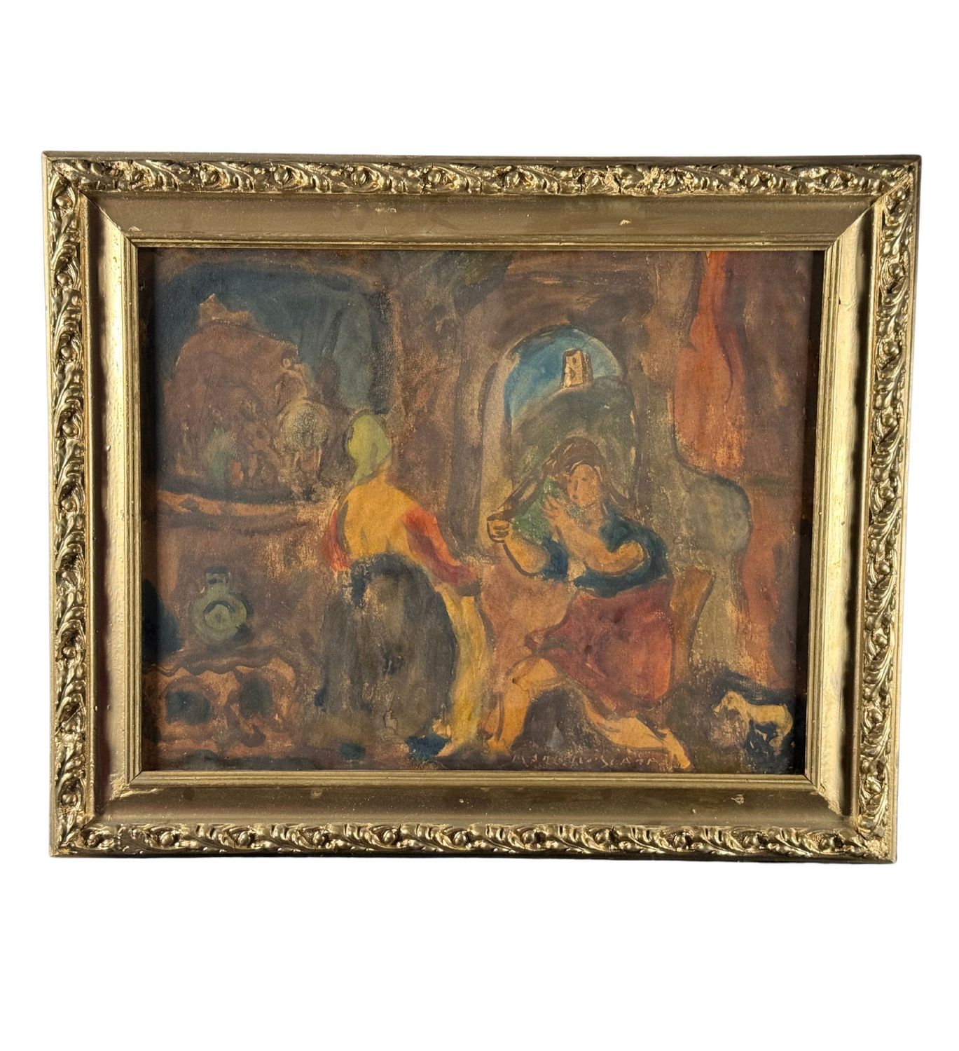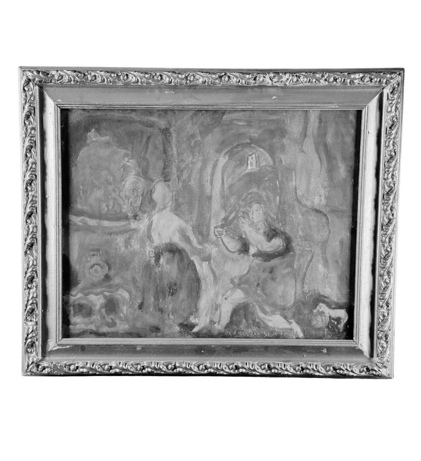 Dipinto olio su pannello, periodo XX secolo scuola Italiana, raffigurante Personaggi. Dimensioni compreso cornice: 66x55 cm. Dimensioni interno cornice: 54x42 cm. Reca firma in basso a destra da artista non identificato. Opera in buone condizioni con lievi segni di vissuto come da foto allegate.