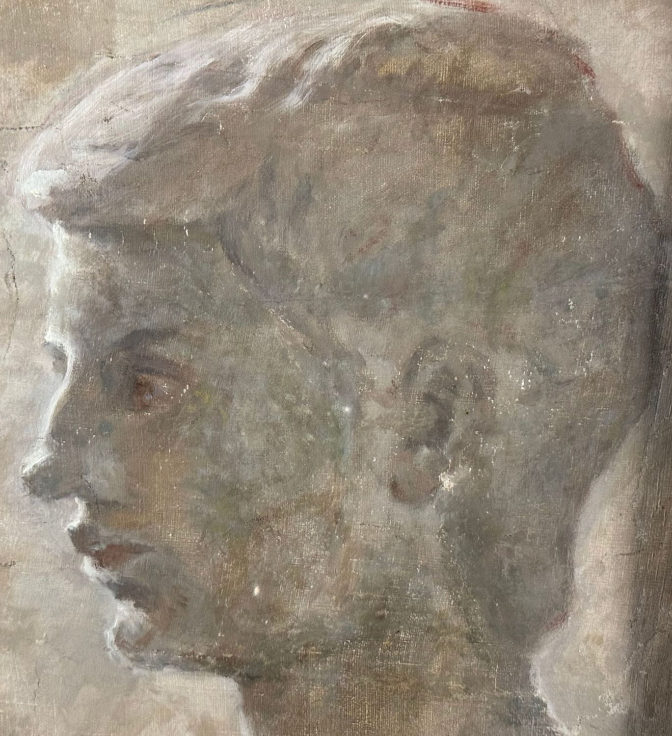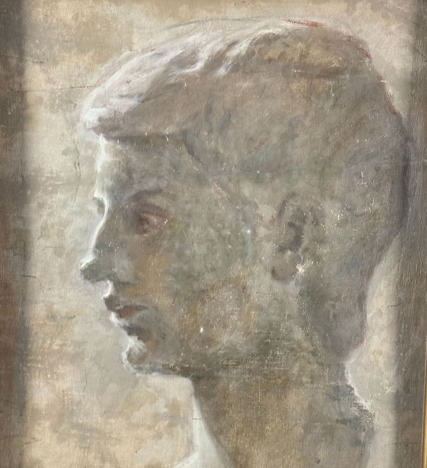 Dipinto olio su tela applicata su tavola, periodo XX secolo scuola Italiana, raffigurante Profilo di donna. Dimensioni compreso cornice: 56,5x60 cm. Dimensioni interno cornice: 36,5x40 cm. Da artista anonimo. Opera in buone condizioni.