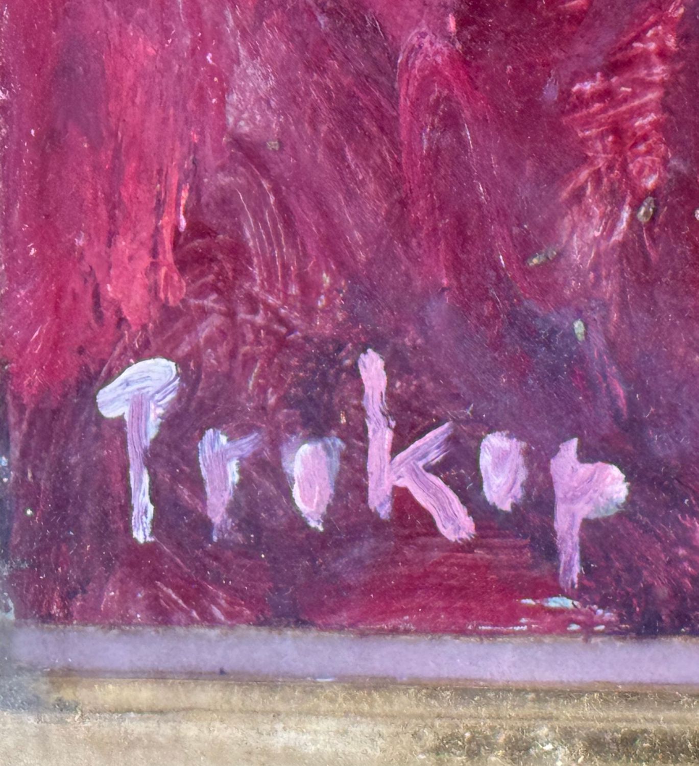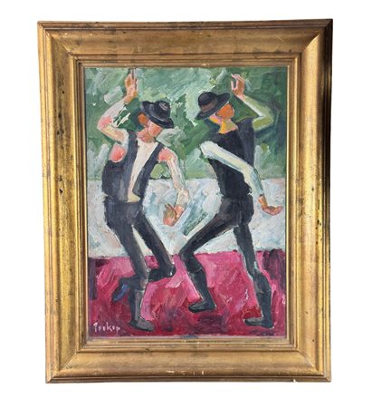 Dipinto olio su pannello, periodo XX secolo scuola Italiana, raffigurante "Il ballo". Dimensioni compreso cornice: 65x82 cm. Dimensioni interno cornice: 45x62 cm. Reca firma in basso a sinistra da Péter Prokop. Opera in buone condizioni.