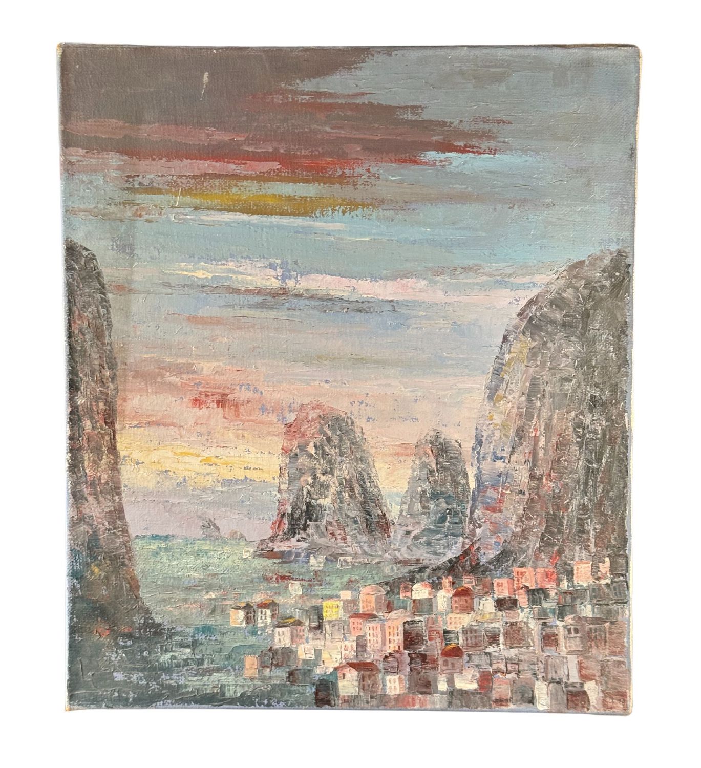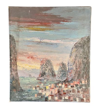 Dipinto olio su tela, periodo XX, raffigurante Paesaggio. Dimensioni: 60x70 cm. Da artista anonimo. Opera in buone condizioni.