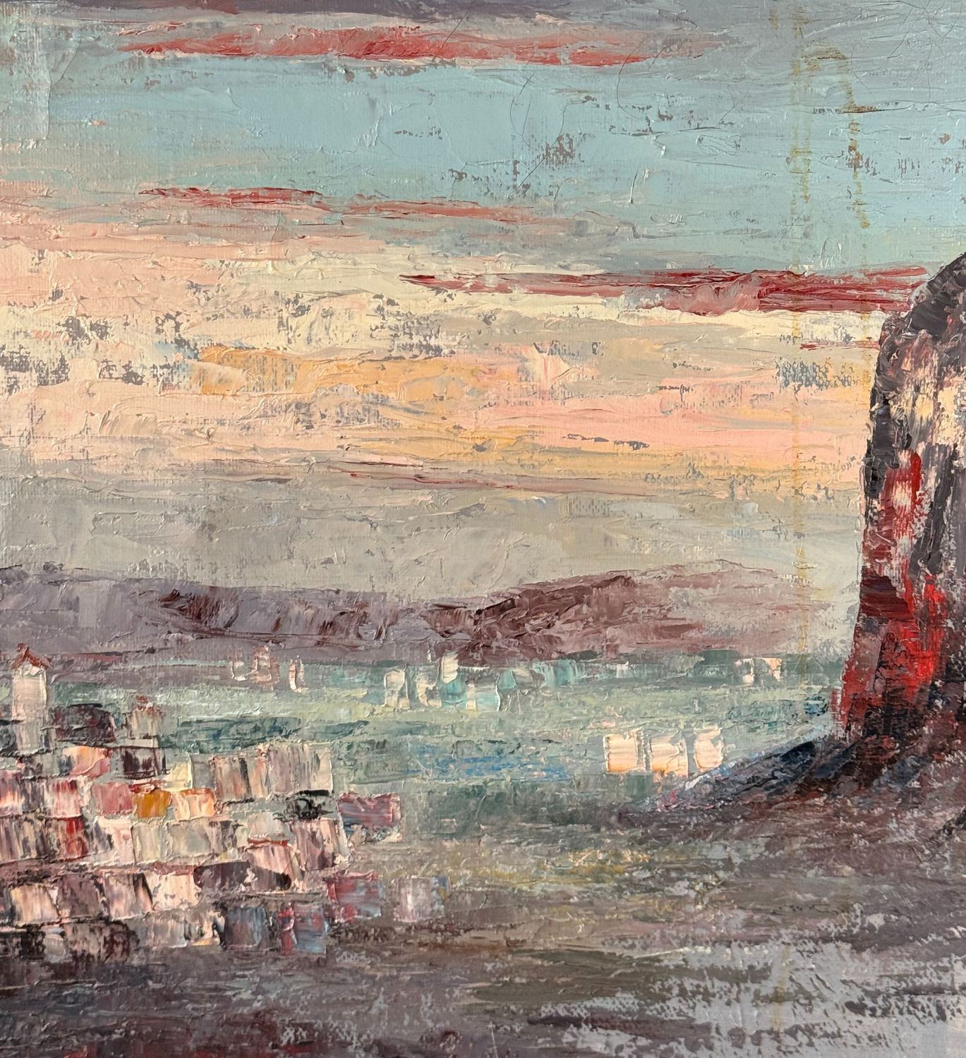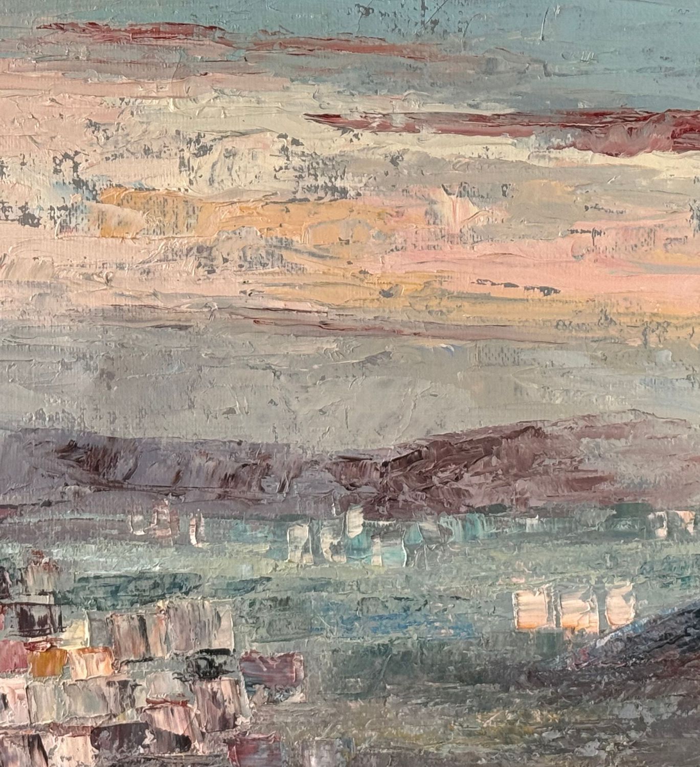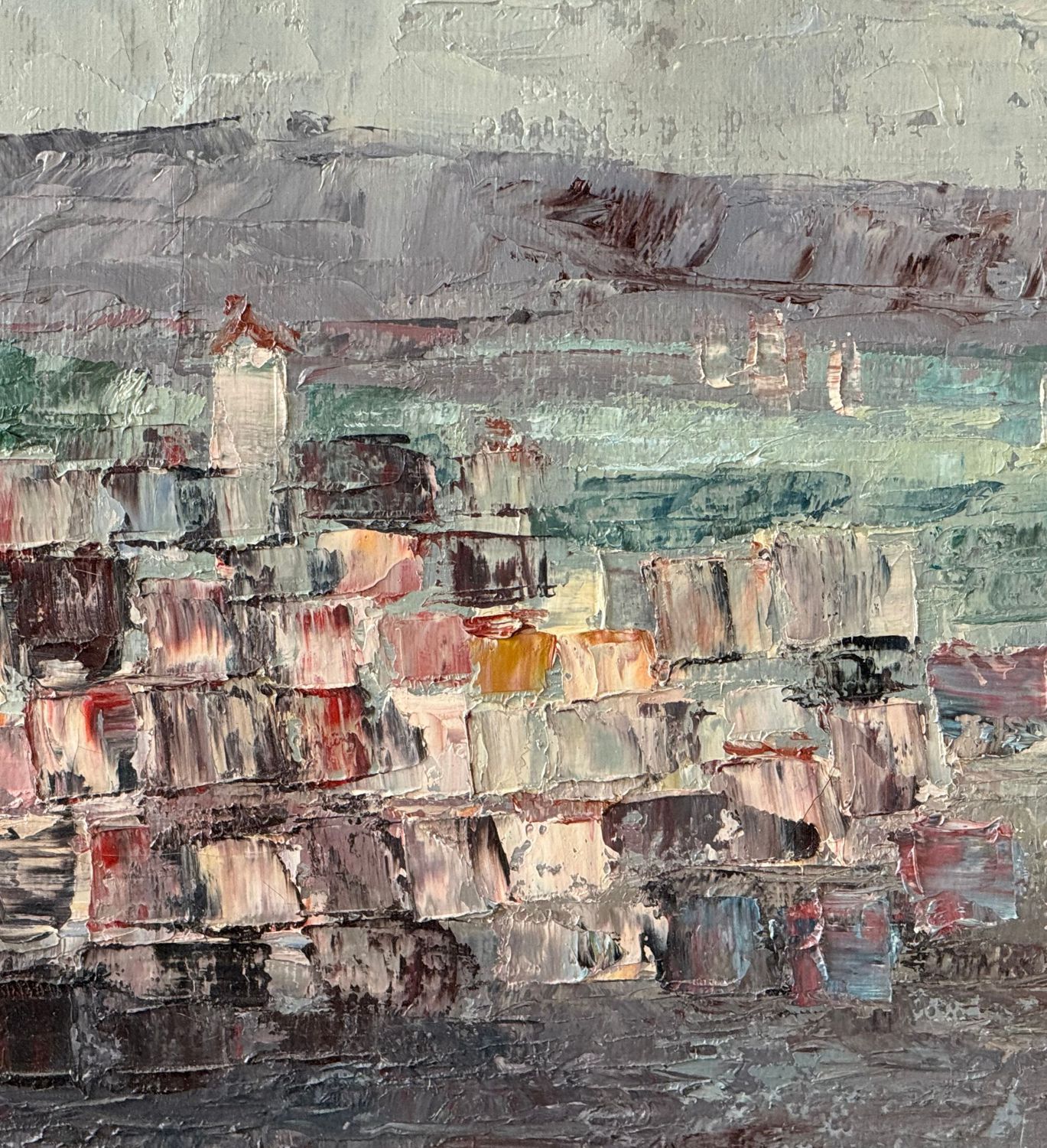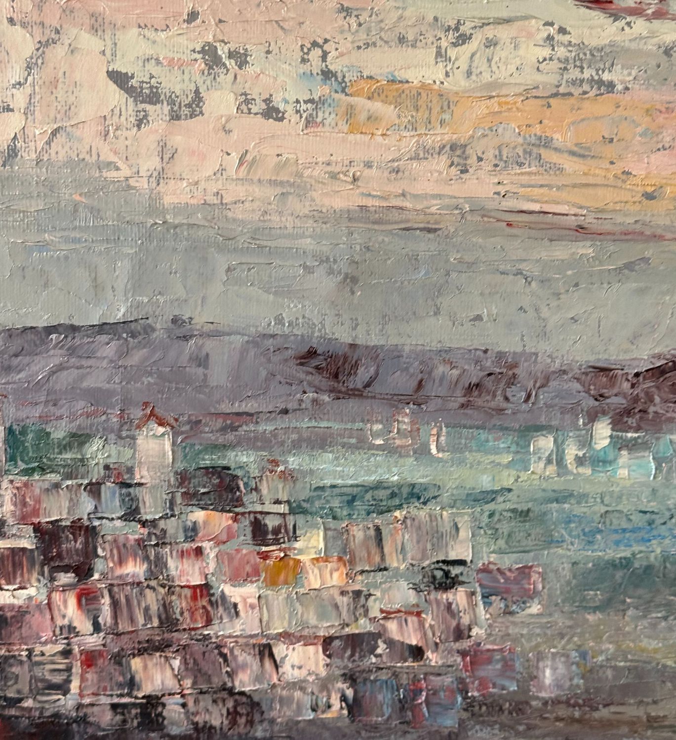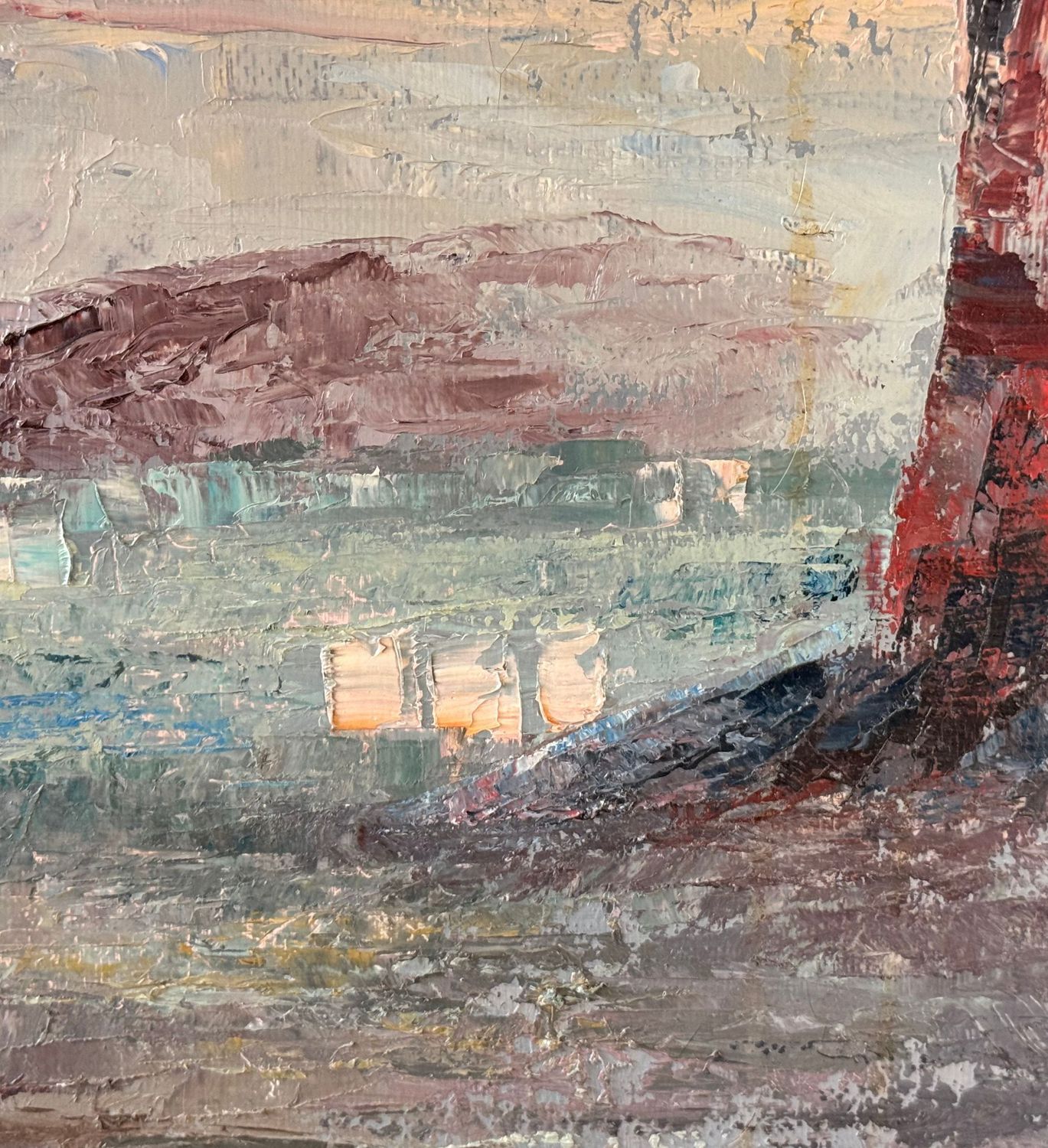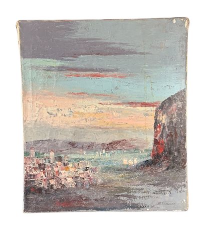 Dipinto olio su tela, periodo XX secolo, raffigurante Paesaggio. Dimensioni: 60x70 cm. Reca firma in basso a destra da artista non identificato. Opera in buone condizioni.