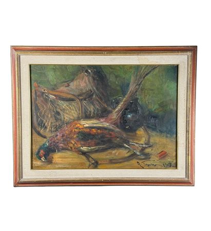 Dipinto olio su tela, periodo XX secolo scuola Italiana, raffigurante Natura morta. Dimensioni compreso cornice: 85x66 cm. Dimensioni interno cornice: 70x50 cm. Reca firma in basso a destra da artista non identificato. Opera in discrete condizioni, presenta due restauri come da foto allegate.