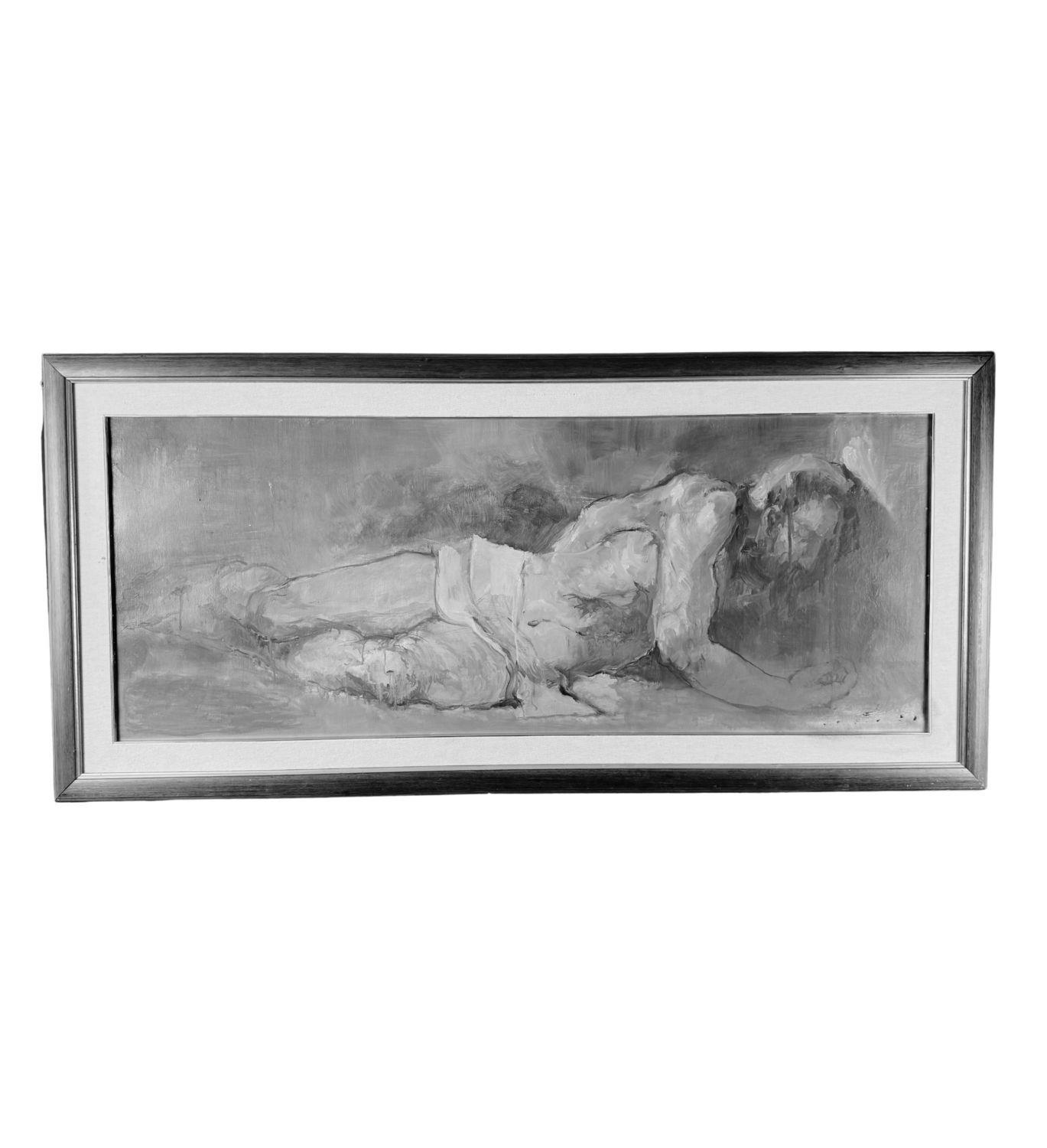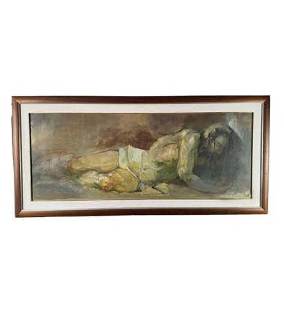 Dipinto olio su tela, periodo XX secolo scuola Italiana, raffigurante Cristo disteso. Dimensioni compreso cornice: 67x144 cm. Dimensioni interno cornice: 49x125 cm. Da artista anonimo. Opera in buone condizioni.