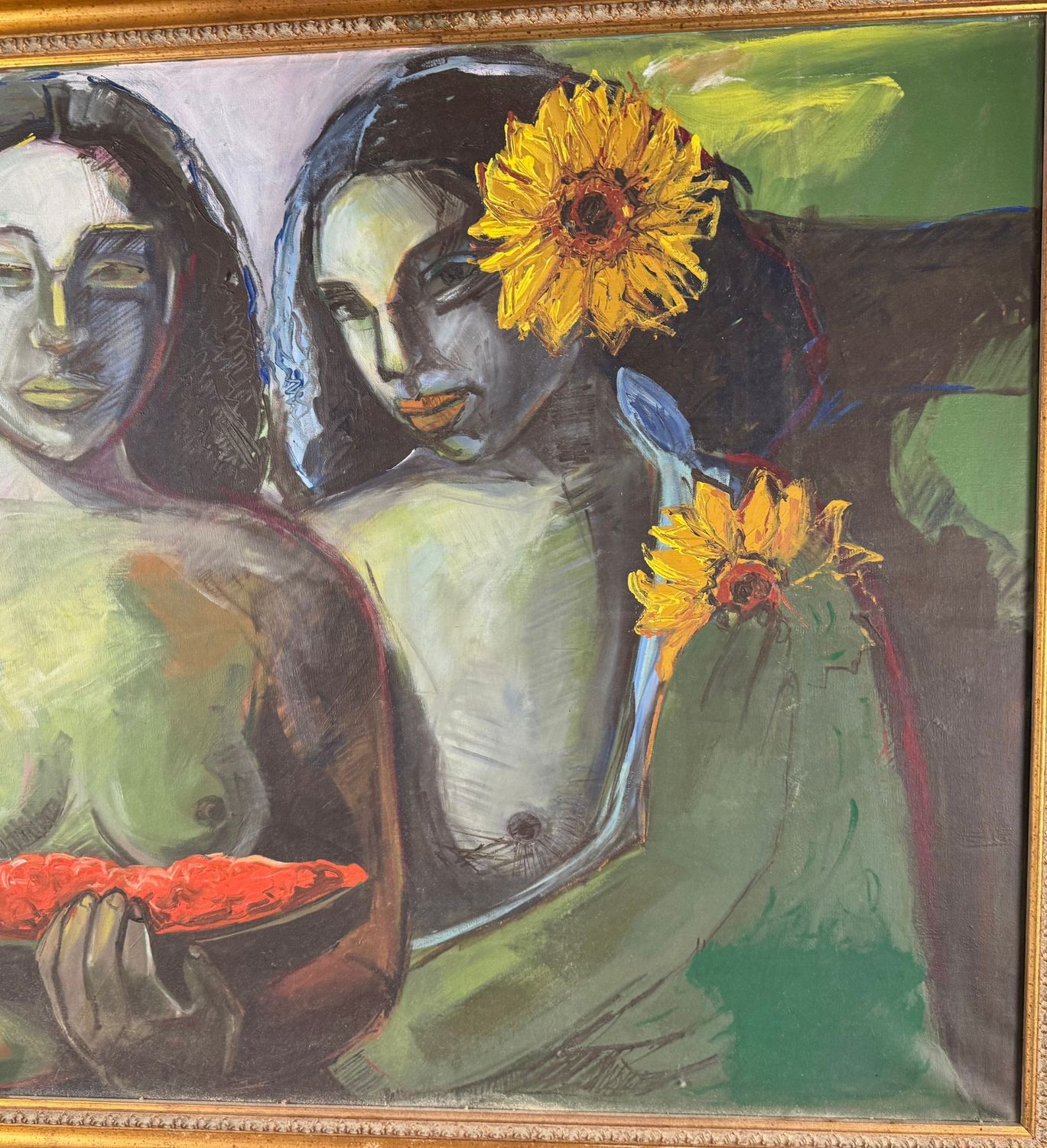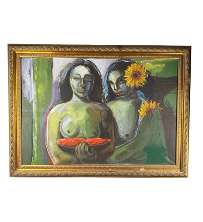 Dipinto olio su tela, periodo XX secolo scuola Italiana, raffigurante Due figure femminili. Dimensioni compreso cornice: 92x126 cm. Dimensioni interno cornice: 75x108 cm. Da artista anonimo. Opera in buone condizioni.