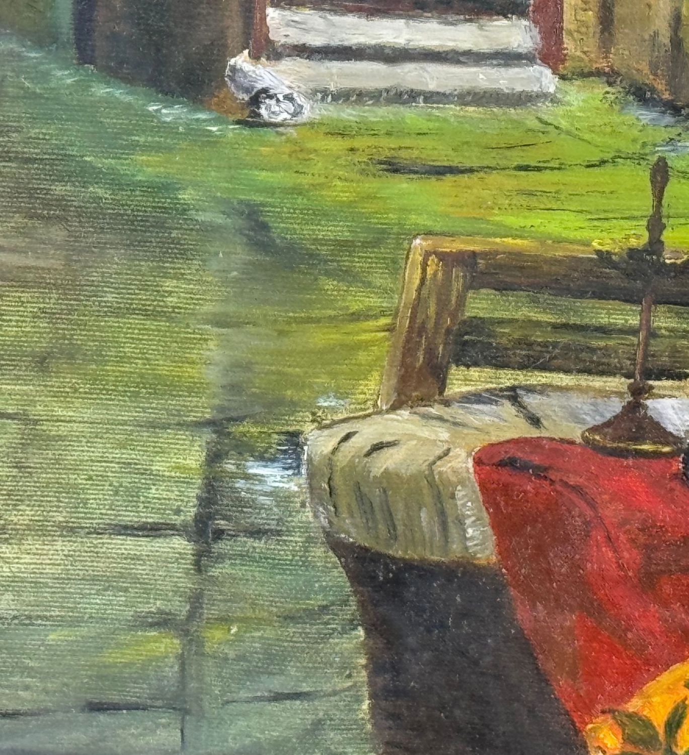 Dipinto olio su tela, periodo XX secolo, scuola Italiana, raffigurante Vicoletto. Dimensioni compreso cornice: 40x50 cm. Dimensioni interno cornice: 25x35 cm. Reca firma in basso a destra Rita Marilena. Opera in buone condizioni.