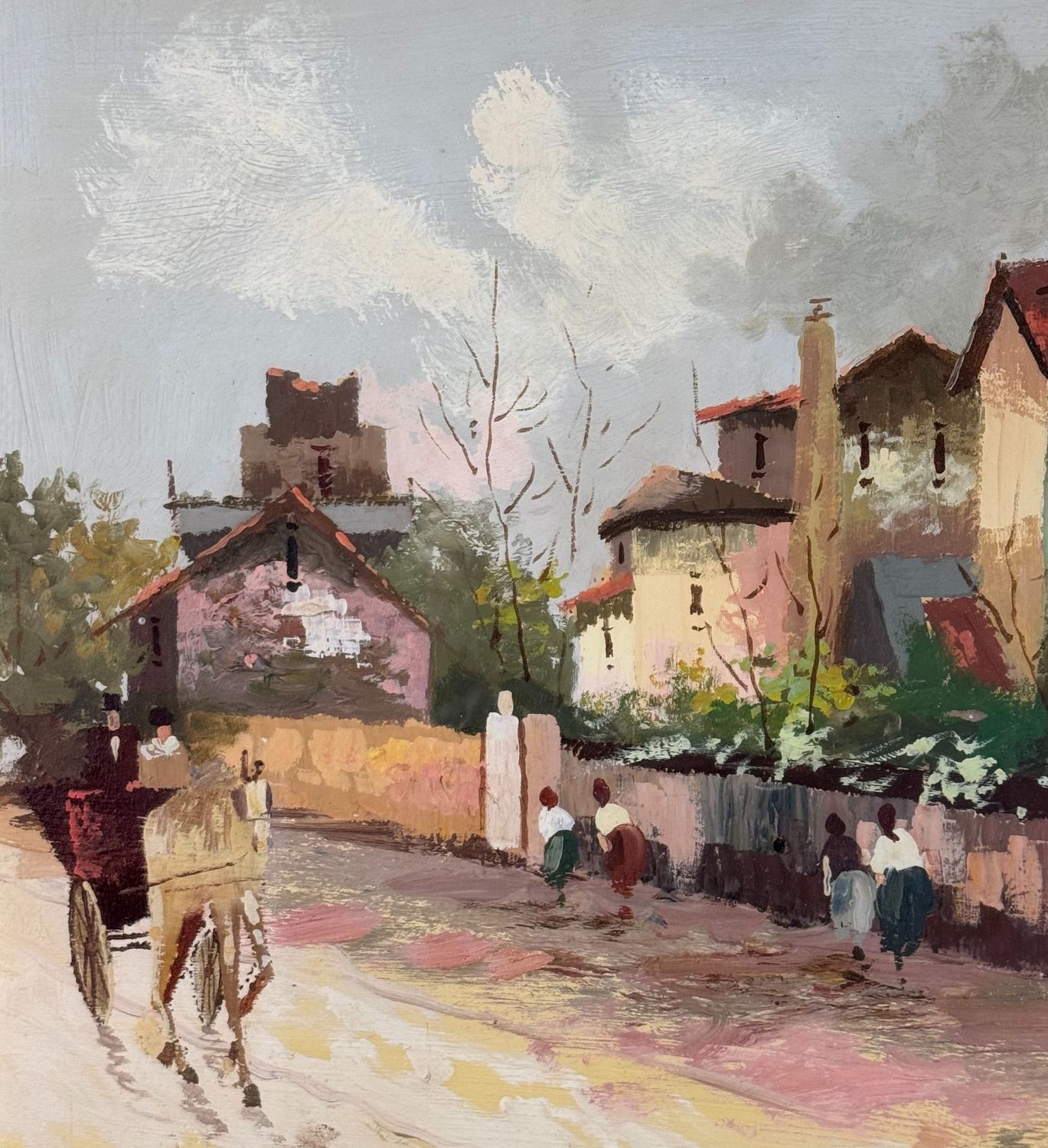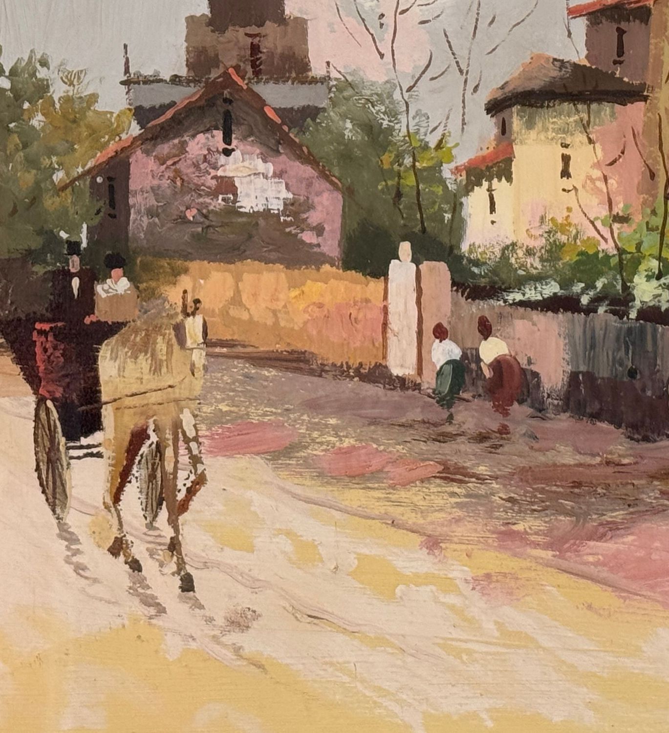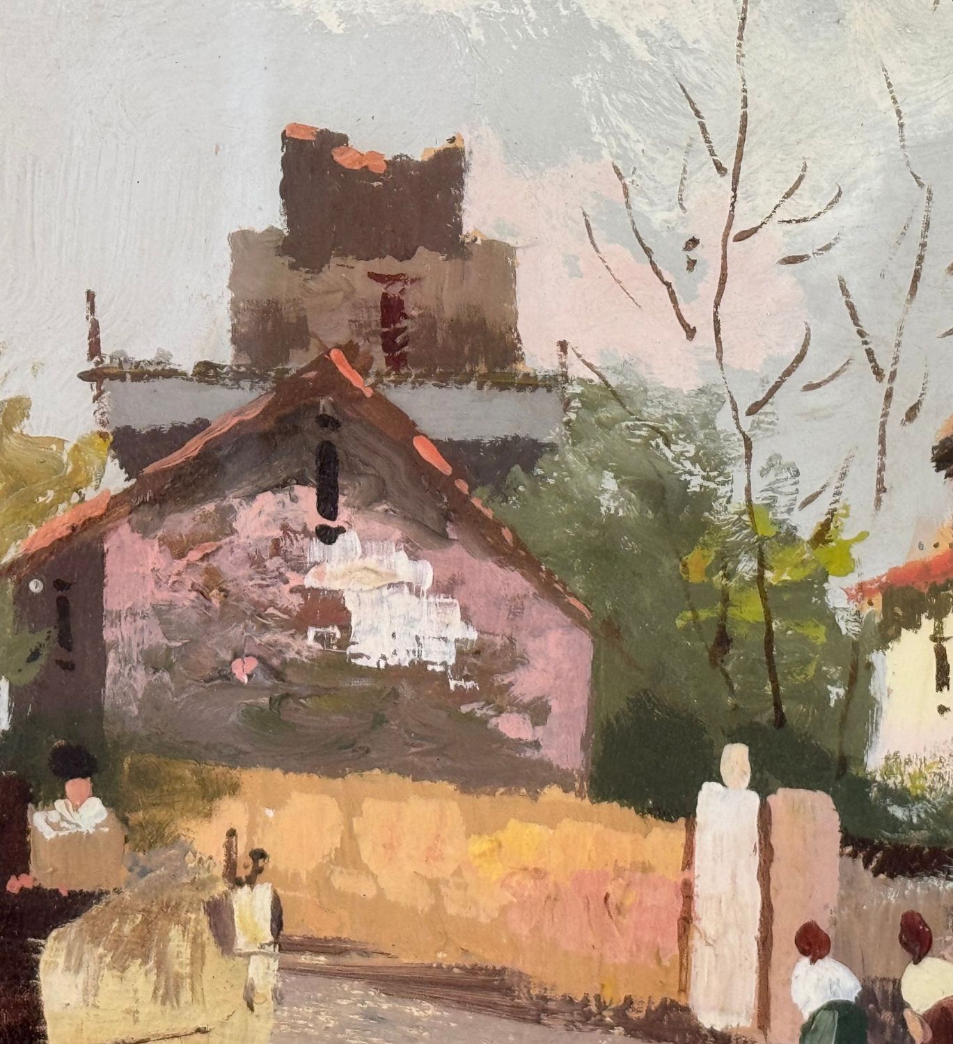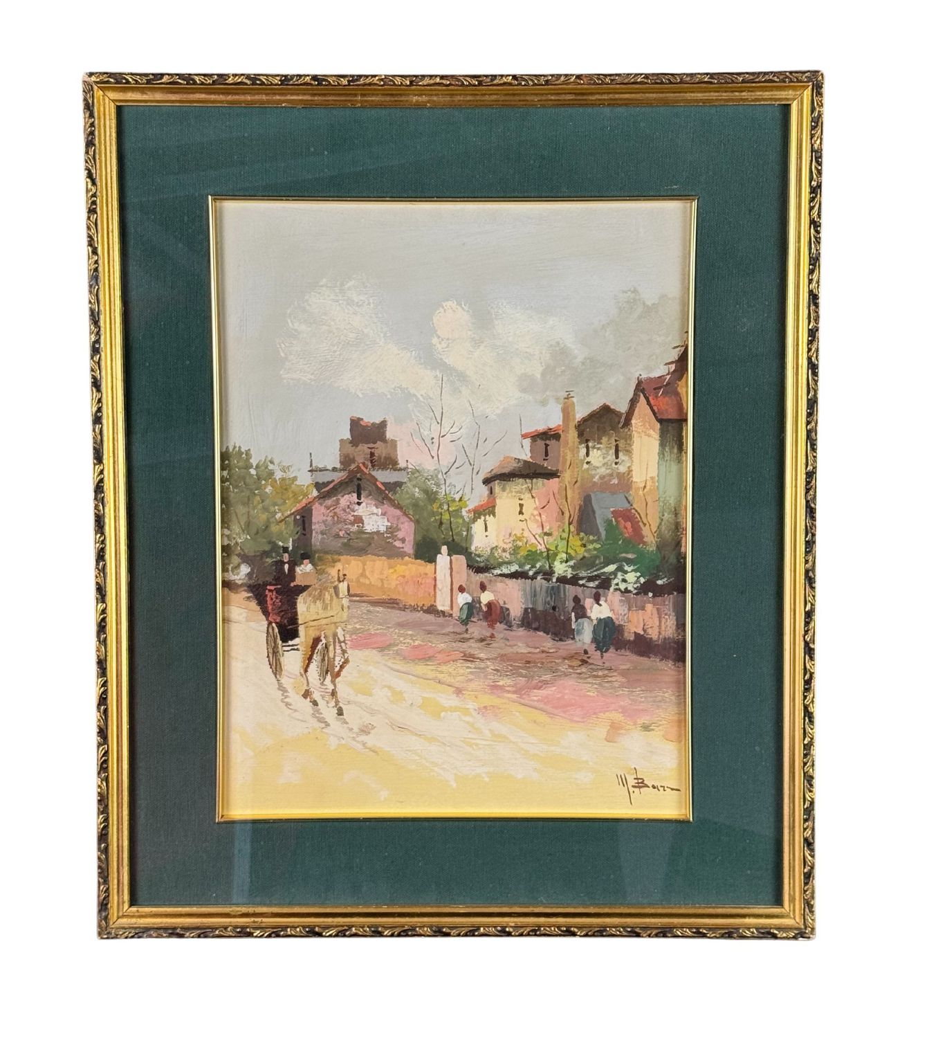 Dipinto olio su cartoncino, periodo XX secolo, scuola Italiana, raffigurante Stradina con personaggi. Dimensioni compreso cornice: 46x55 cm. Dimensioni interno cornice: 30x40 cm. Reca firma in basso a destra artista non identificato. Opera in buone condizioni.