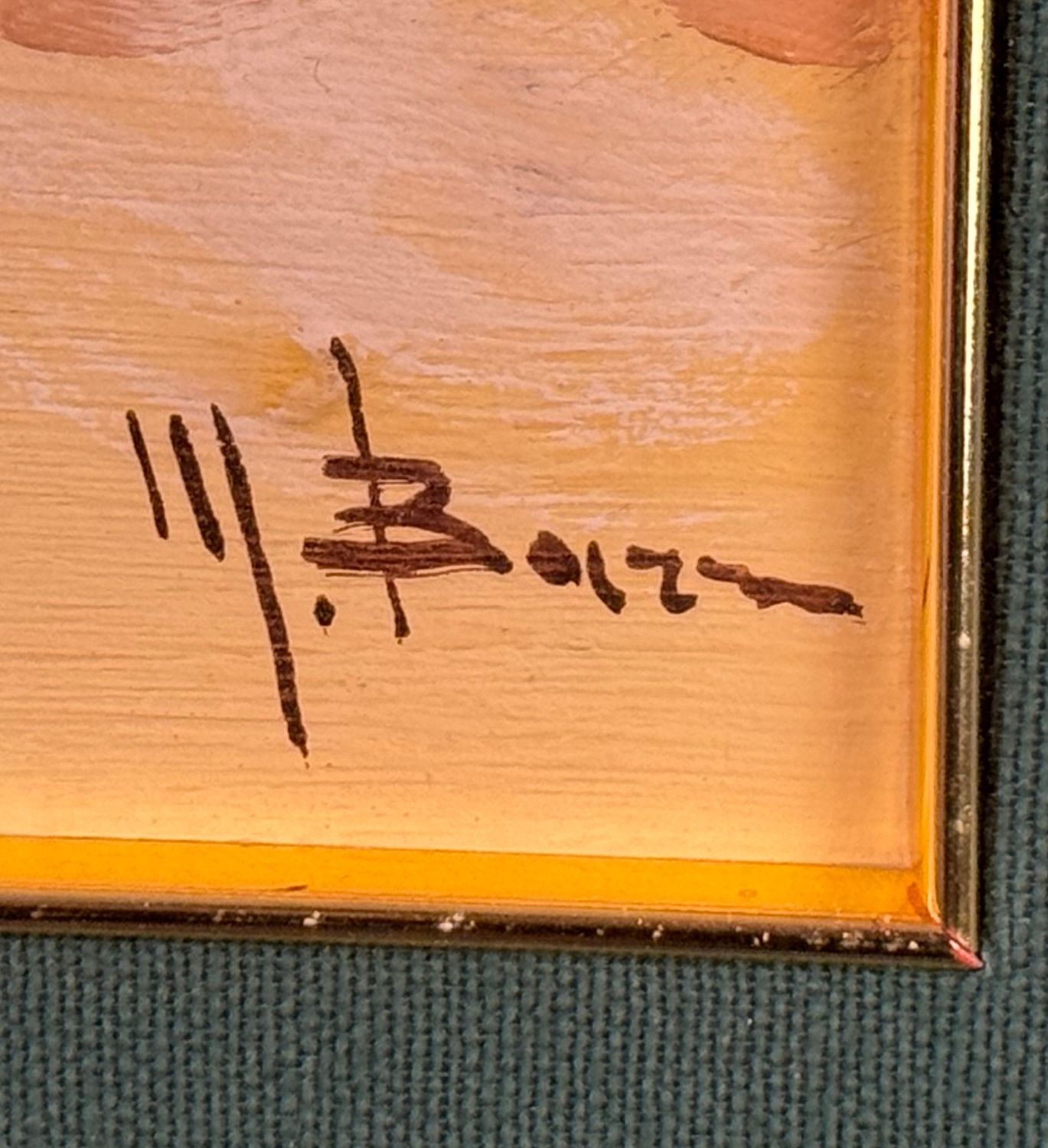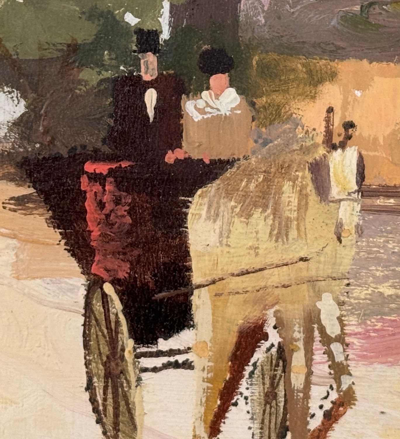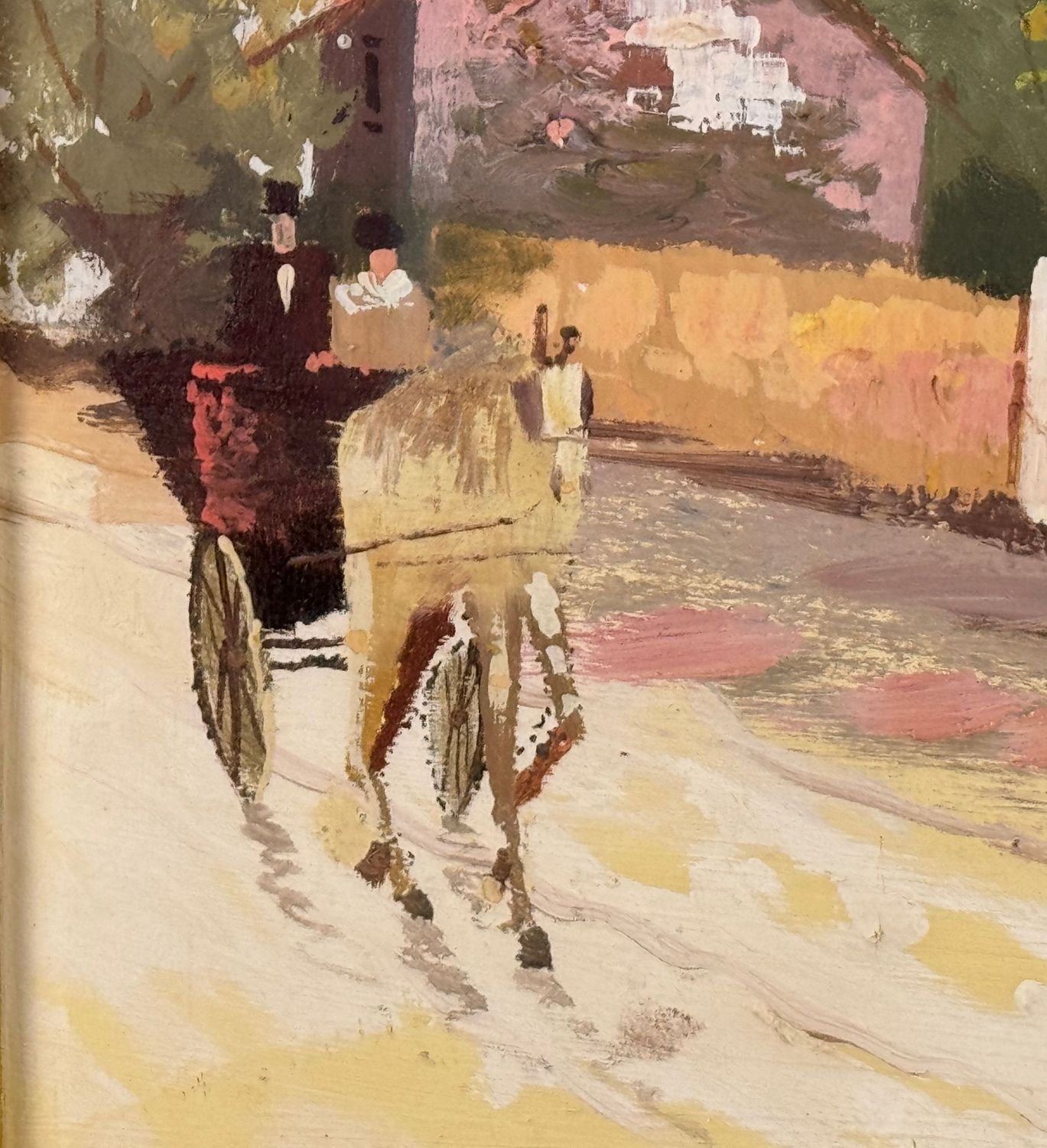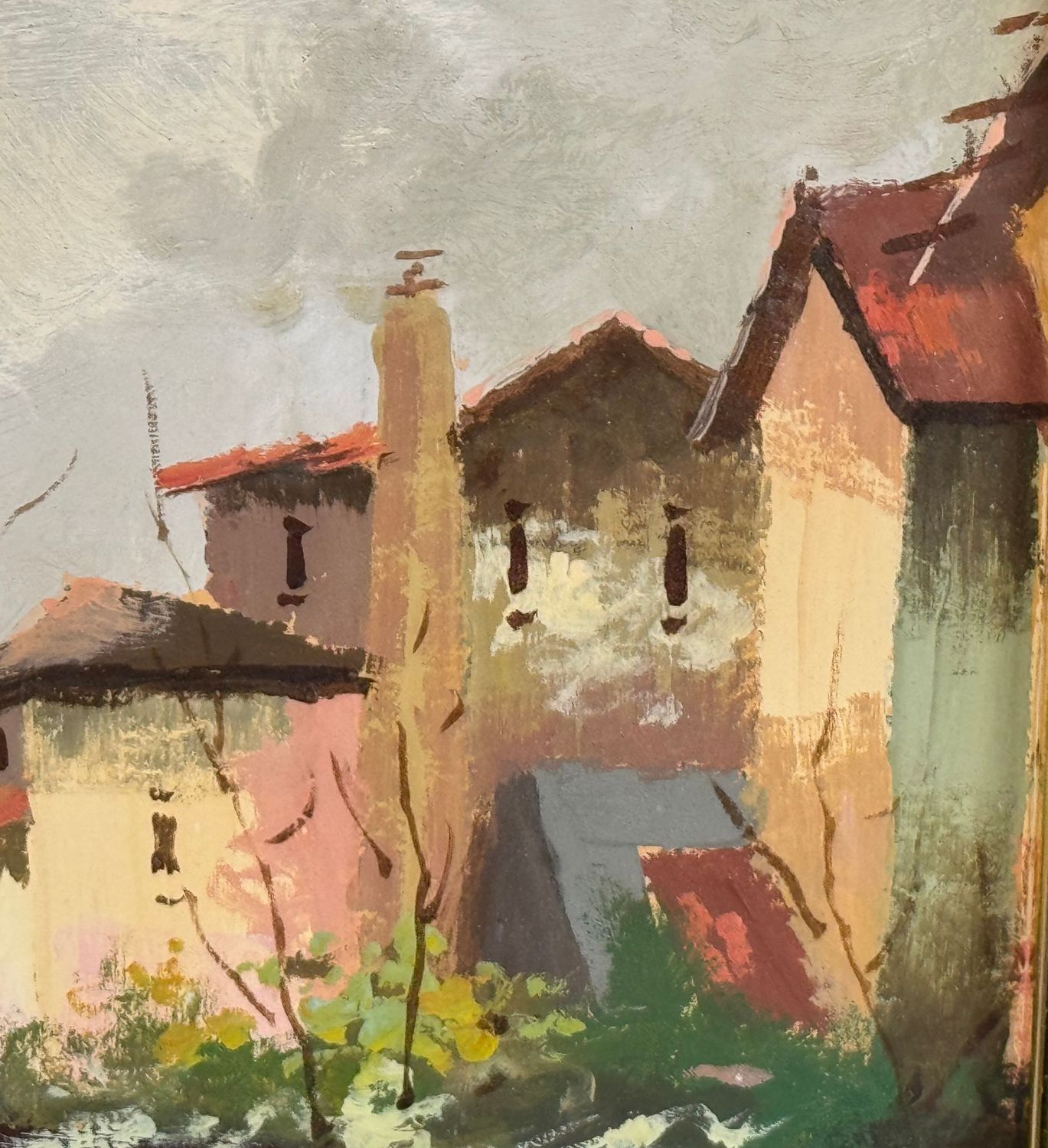 Dipinto olio su cartoncino, periodo XX secolo, scuola Italiana, raffigurante Stradina con personaggi. Dimensioni compreso cornice: 46x55 cm. Dimensioni interno cornice: 30x40 cm. Reca firma in basso a destra artista non identificato. Opera in buone condizioni.