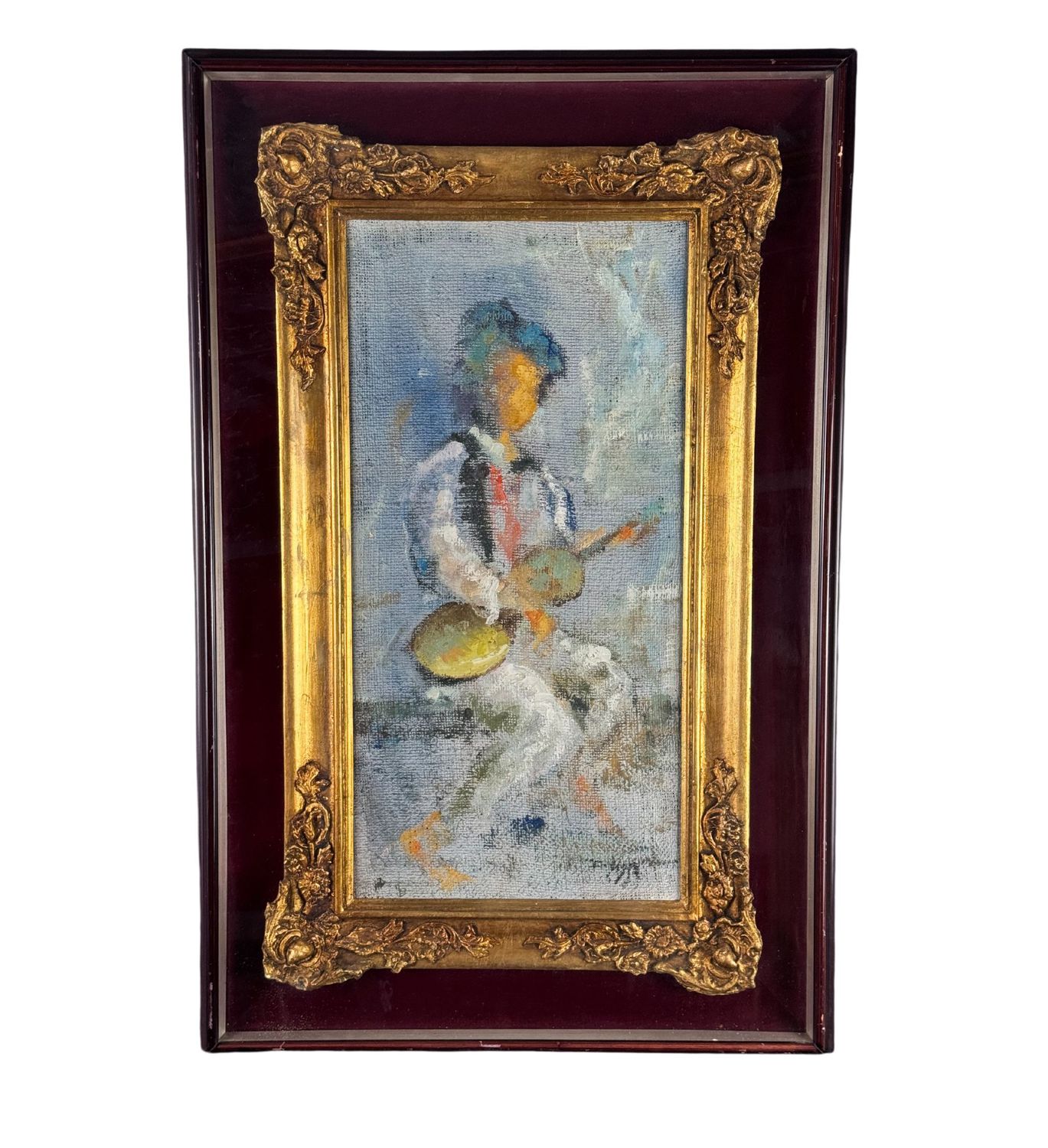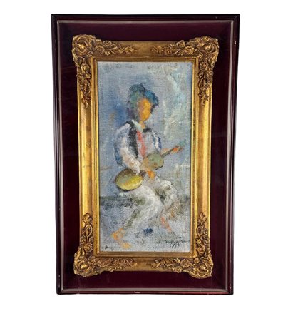 Dipinto olio su tela, periodo XX secolo, scuola Italiana, raffigurante Musicista. Dimensioni compreso cornice: 56x85 cm. Dimensioni interno cornice: 30x60 cm. Reca firma in basso a destra Zizza. Opera in buone condizioni.