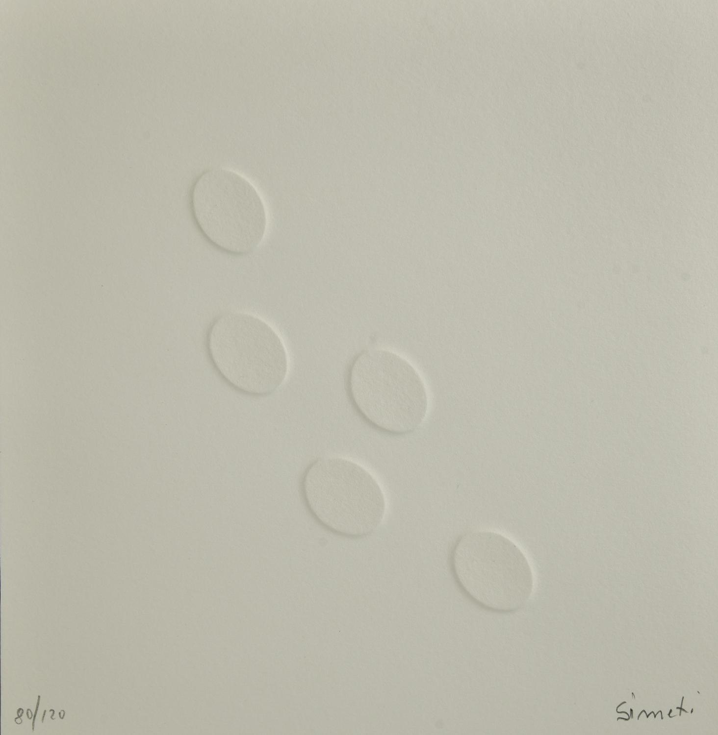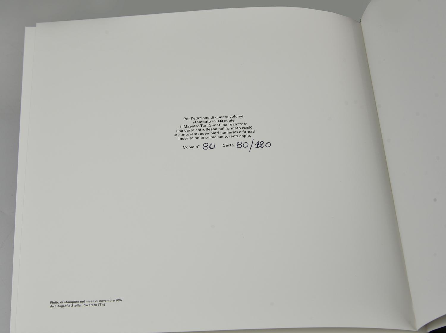 L’opera accompagna le prime centoventi copie dell’edizione del volume stampato in ottocento copie della mostra "Turi Simeti: opere recenti" tenutasi presso la GlobArt gallery, Acqui Terme, 1 dicembre 2007 - 31 gennaio 2008