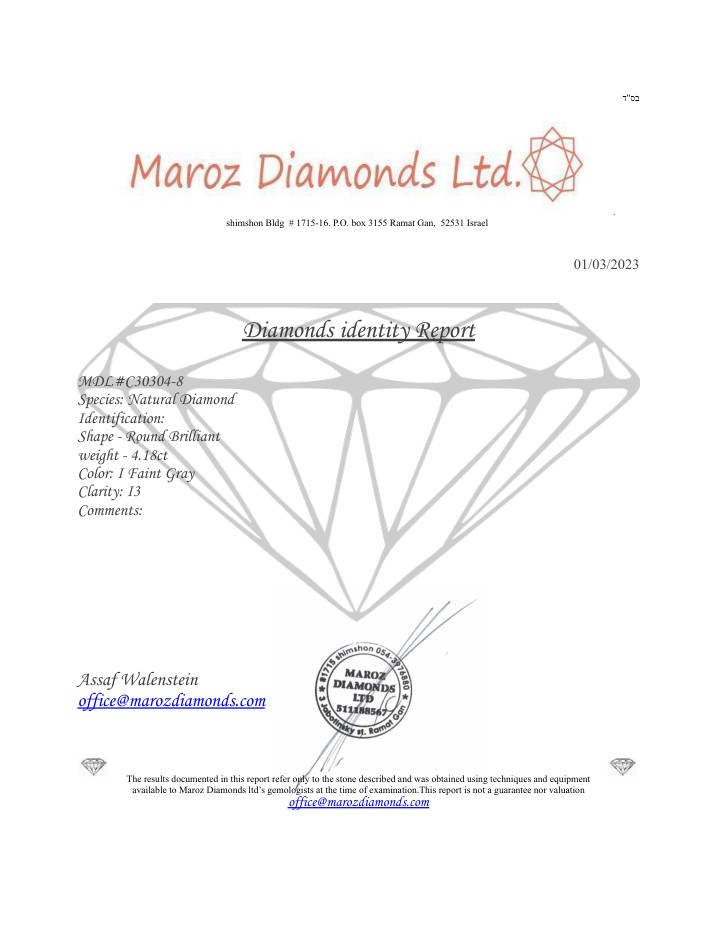 DIAMANTE NATURAL POLISHED 4,18 - COLORE I/GRIGIO TENUE - PUREZZA I3 - CERTIFICATO ID - C30304-8 - COMMISSIONE D’ASTA 25% - SEGUI IL LIVE SUL NOSTRO CANALE YOUTUBE https://www.youtube.com/@veronikwatches/streams