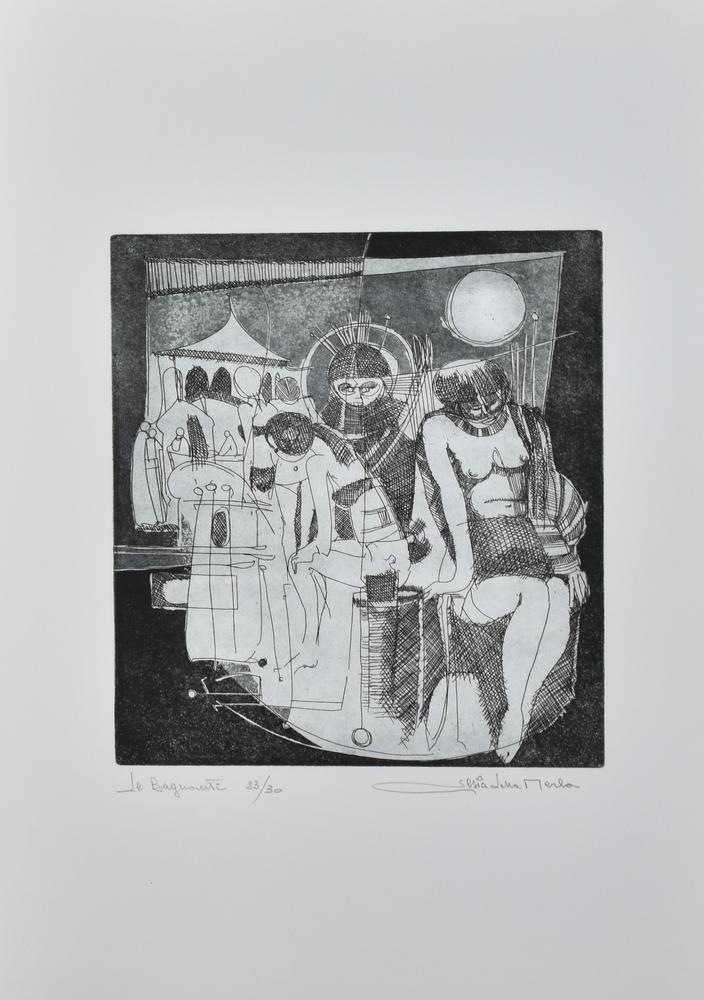 Gianni Sesia della Merla LE BAGNANTI incisione su carta, battuta cm 25x22; su...