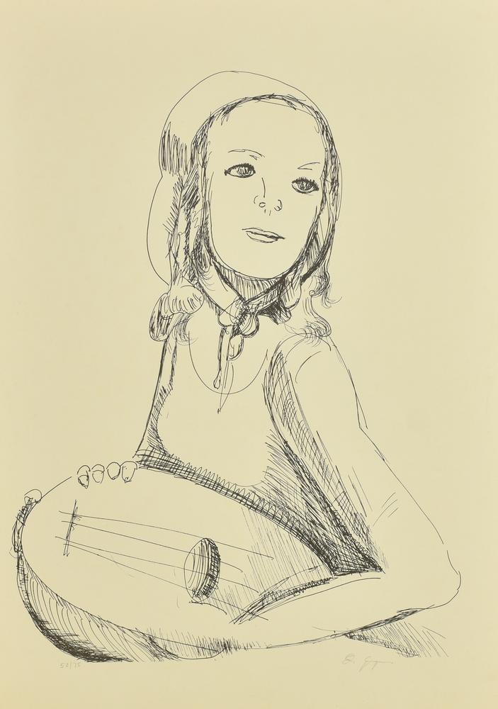Lot 72 | Ernesto Di Gregorio DONNA CON MANDOLINO litografia su carta, cm 70x50; es....