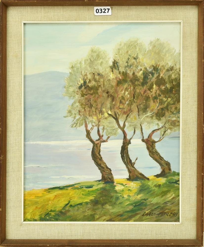 Lot 98 | Carlo Marchi ALBERI olio su tavola, cm 50x37 firma