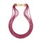 a sei fili di rubini taglio briolette a scalare dal centro, con chiusura di forma geometrica impreziosita da rubini taglio ovale cabochon per totale ct 4,00 circa.