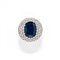 a cupola, al centro zaffiro taglio ovale di ct 8,90 circa entro contorno di diamanti taglio brillante per totale ct 6,50 circa.
