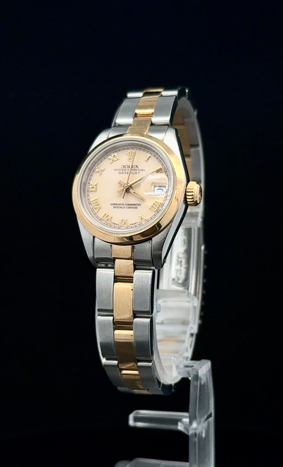 Marca Rolex Modello (Orologio) Lady-Datejust Numero di referenza 69163 Carica Automatico Materiale della cassa Oro/Acciaio Materiale cinturino Oro/acciaio Anno di produzione 1990 Condizione Ottimo (di seconda mano, segni di usura assenti o appena visibili) Corredo documenti originali, no box Calibro Carica Automatico Materiale della cassa Oro/Acciaio Diametro 26 mm Impermeabile 10 ATM Materiale lunetta Oro giallo Vetro Vetro zaffiro Quadrante Bianco Cinturino Materiale cinturino Oro/acciaio Colore cinturino Oro/acciaio Chiusura Déployante Materiale chiusura Acciaio Funzioni Data - COMMISSIONE D’ASTA 25% - SEGUI IL LIVE SUL NOSTRO CANALE YOUTUBE https://www.youtube.com/@veronikwatches/streams