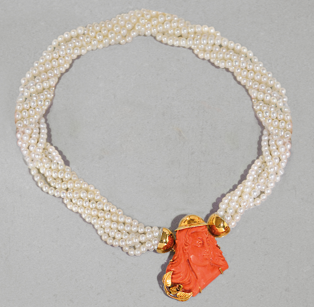 Lot 6 | COLLANA COLLANA. A sette fili di piccole perle coltivate con al centro...
