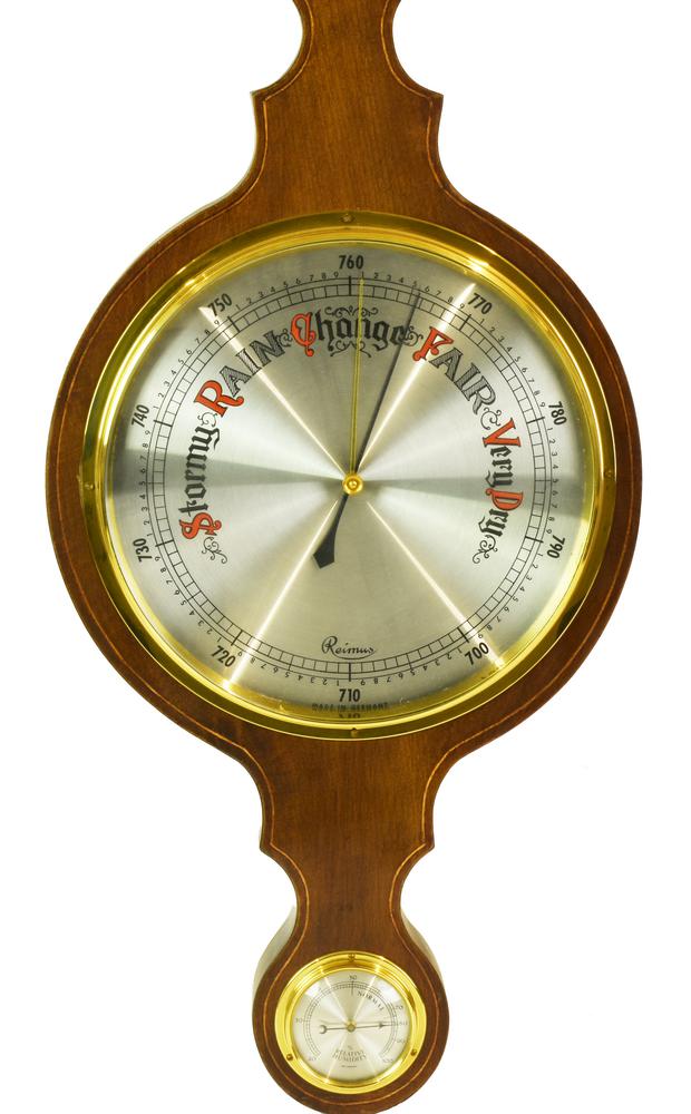 BAROMETRO in metallo dorato e legno, marca REIMUS produzione tedesca...