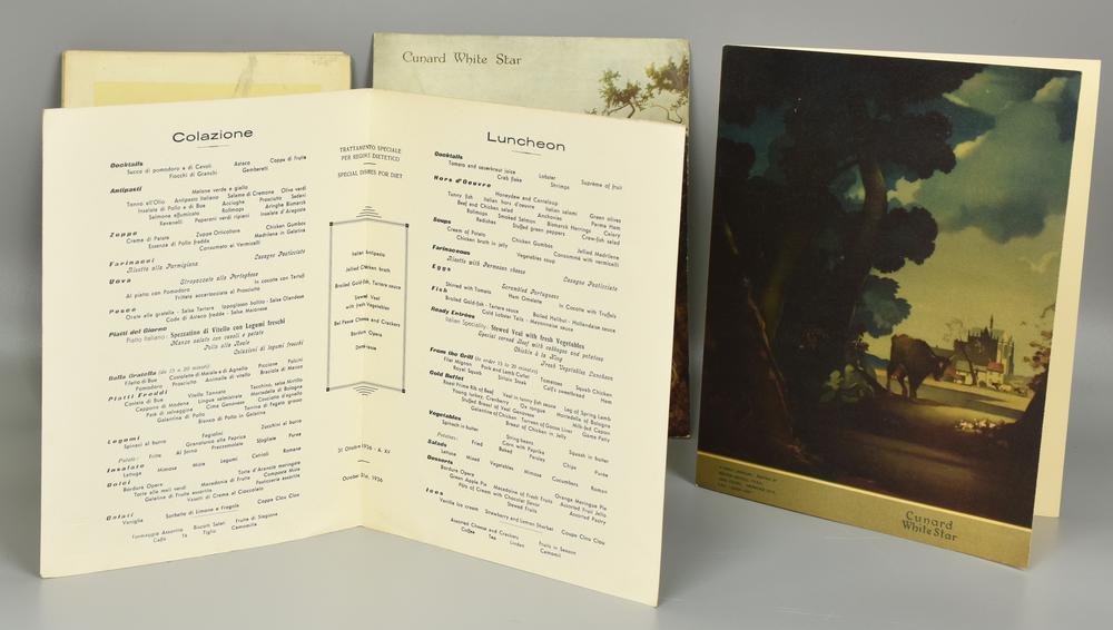 Lot 110 | LOTTO DI 8 MENU lotto di 8 menu di cui - 6 della motonave Conte di Savoia -...
