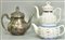 Lot 149 | LOTTO DI TRE TEIERE in peltro e ceramica, h da cm 11 a 21 Difetti