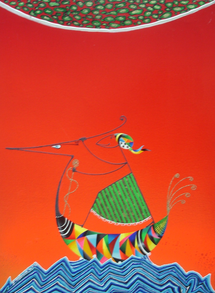 MELONISKI . VILLACIDRO 1943 IL GUARITORE NOMADE, 2007 TECNICA MISTA SU TELA cm 60 x 45 Firma e anno in basso a sinistra. Al retro firma, titolo e anno Autentica del Maestro su fotografia