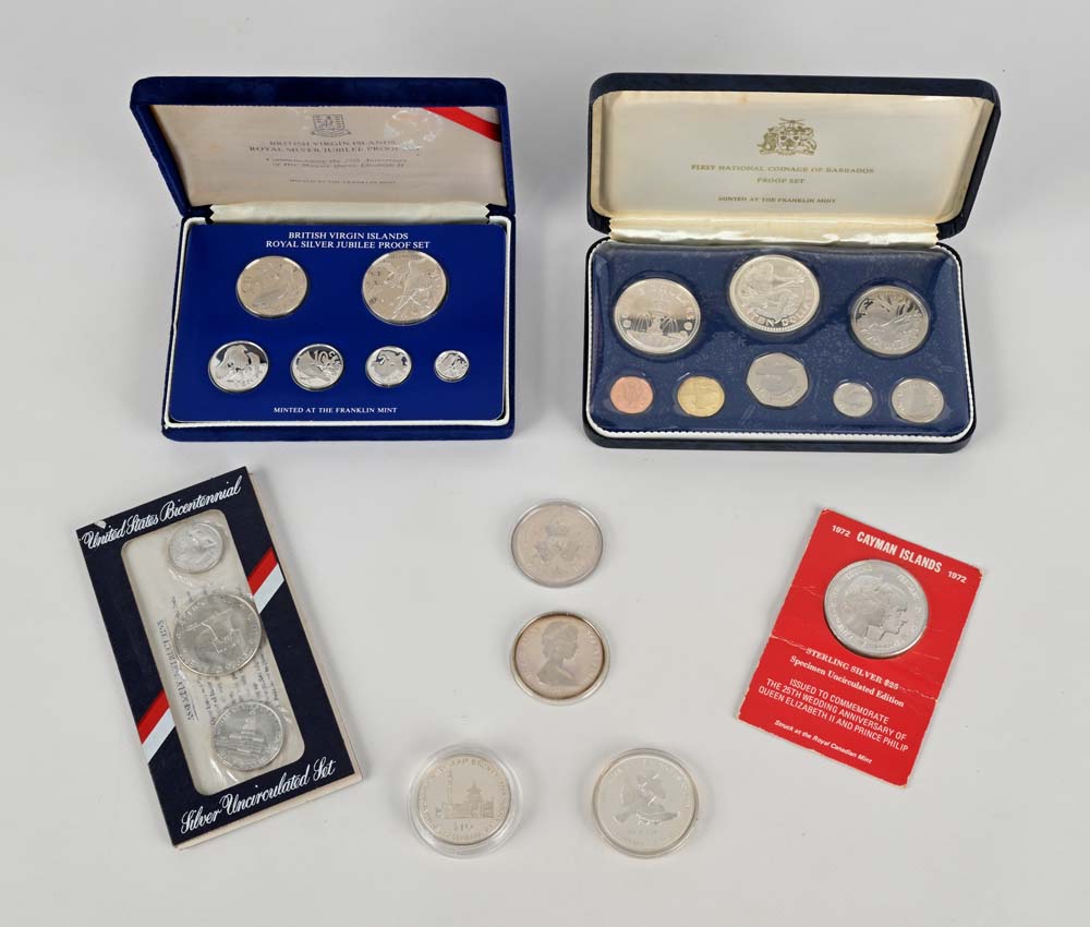 Lotto: Serie Proof Virgin Island 1977; Serie Proof Barbados 1973 e 8 monete Proof e FDC