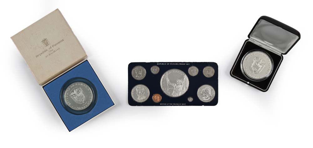 Serie divisionale completa Panama 1977 Proof, 20 Balboas Panama 1974 e 1979...
