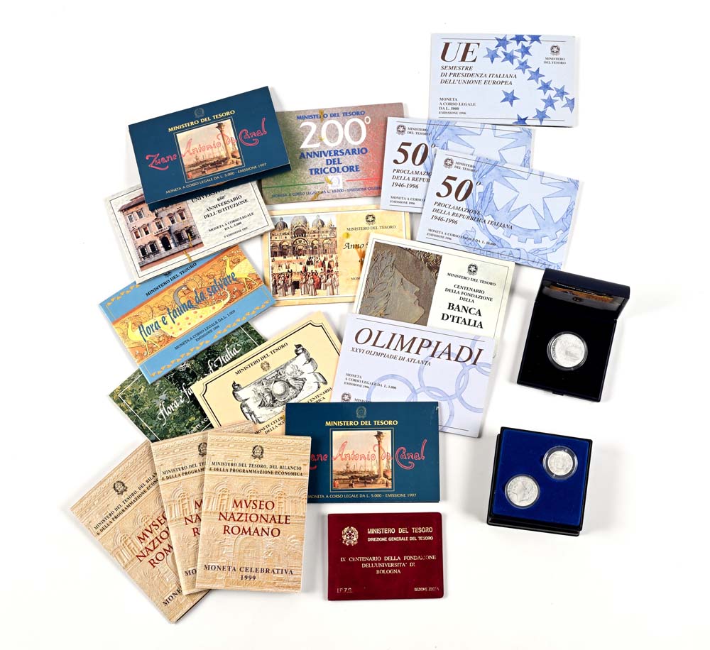 Lotto 19 confezioni di monete da 1.000, 2.000, 5.000 e 10.000 Lire Repubblica Italiana Entro confezioni originali