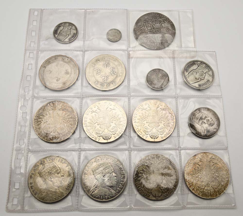 Lotto monete: Dollaro 1897 Provincia Anhwei, Dollaro 1899 Provincia Chihli, 20 Cents Provincia Manciuria Impero della Cina; Bir (2) 1889A (1897), 1/2 Bir e 1/20 di Bir Etiopia; 5 Talleri di Maria Teresa, 10 e 5 Piastre Regno d'Egitto; e Yuzluk Impero Ottomano