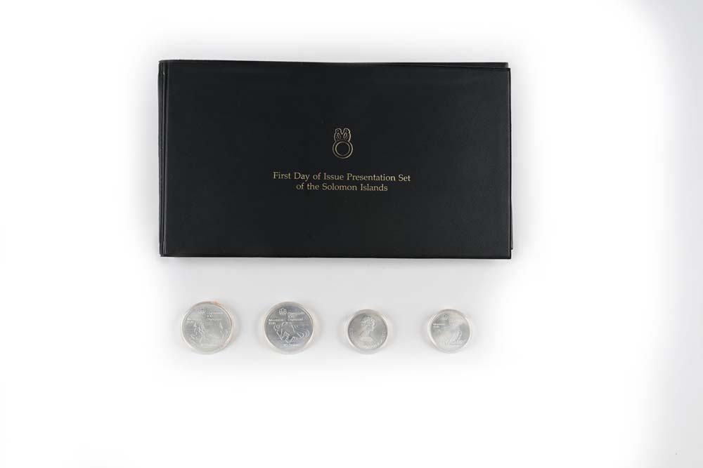 Lotto di monete Proof e cartamoneta First Issue 1977 Salomon Islands; 2 pezzi da 10 Dollari e 2 pezzi da 5 Dollari 1976 Elisabetta II Canada