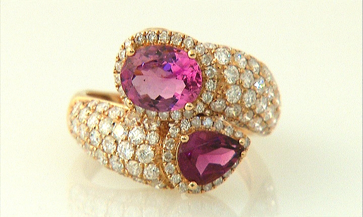 Lot 84 | ANELLO ANELLO. In oro rosa 18 kt con disposizione a contrariè, rubelliti...