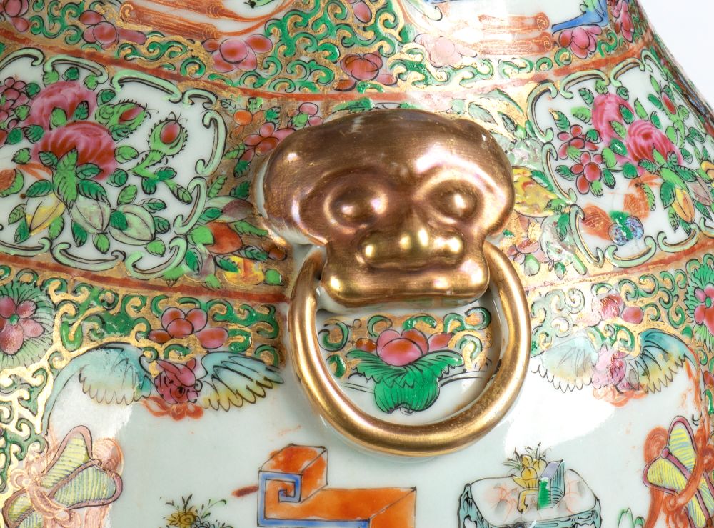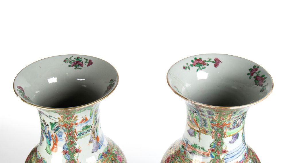 Coppia di vasi Canton a balaustro Cina, dinastia Qing (1644-1912), 1860 ca. Porcellana Alt.: 60 cm