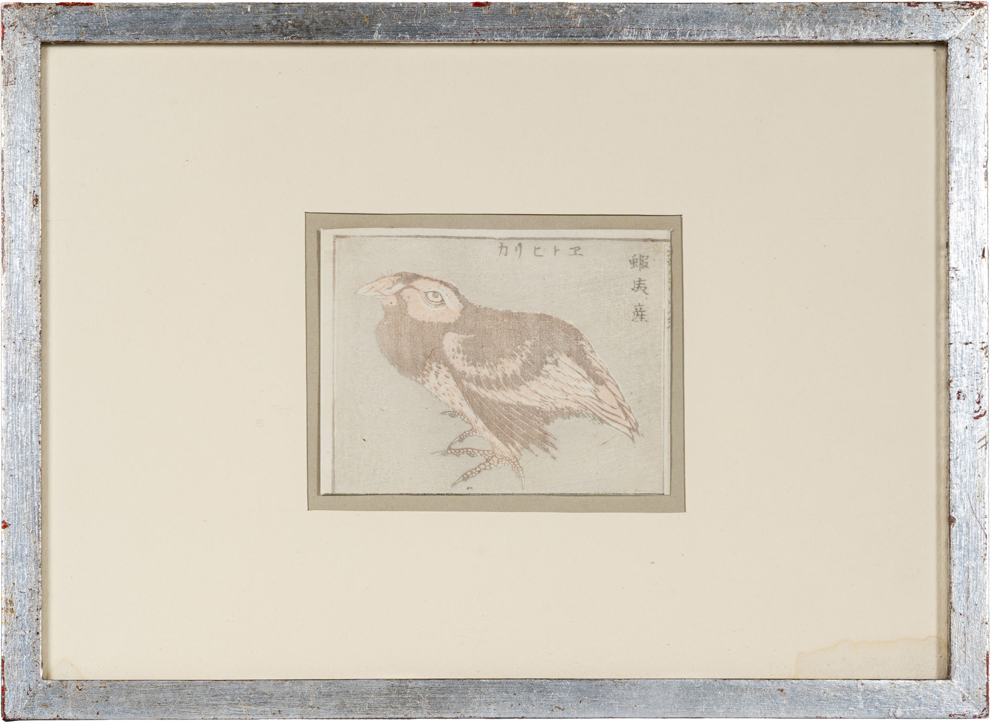 Hokusai Katsushika (Edo, 1760 - Edo, 1849) - Pernice1814-34 ca.Xilografia originale in tre toni di grigio su carta del Giappone10 x 13,2 cm