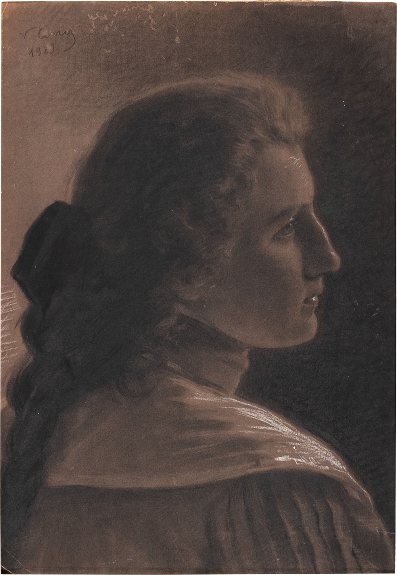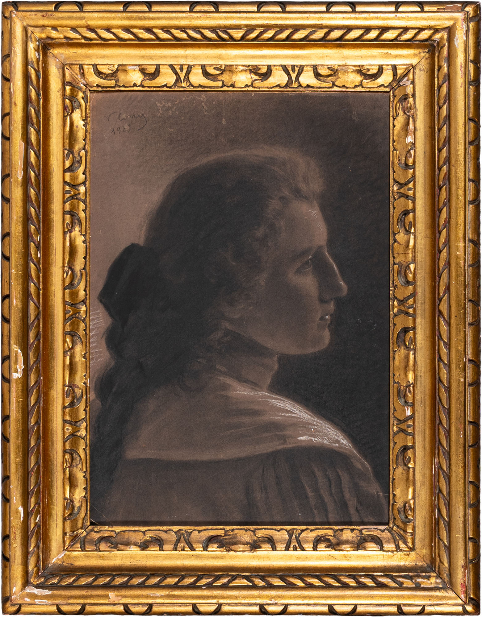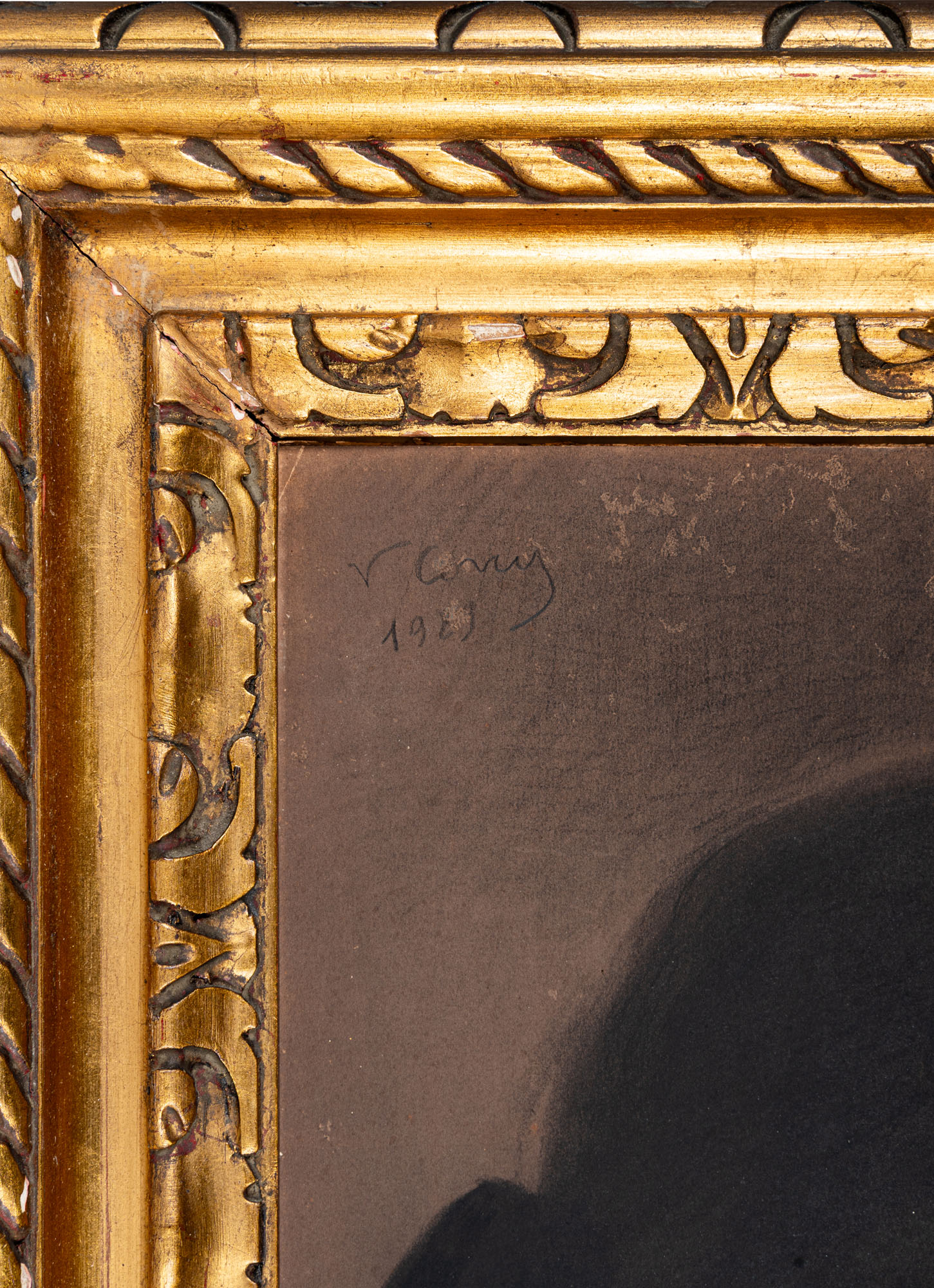 Vittorio Matteo Corcos (Livorno, 1859 - Firenze, 1933) - Ritratto di donna1929Pastello e matita su carta applicata su cartoncino a grisaglia48 x 33,5 cmFirmato e datato in alto a sinistra