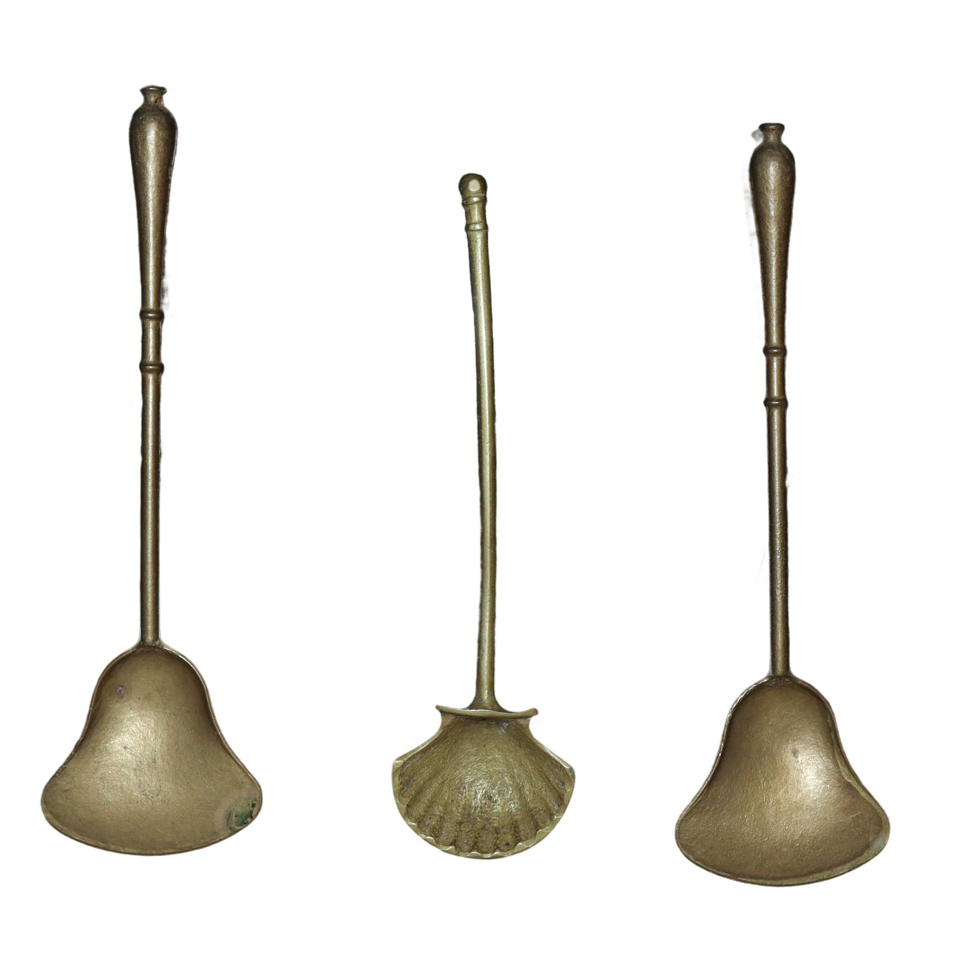 Braciere in ottone dorato con due prese laterali dotato di 3 utensili h cm 9,5X44