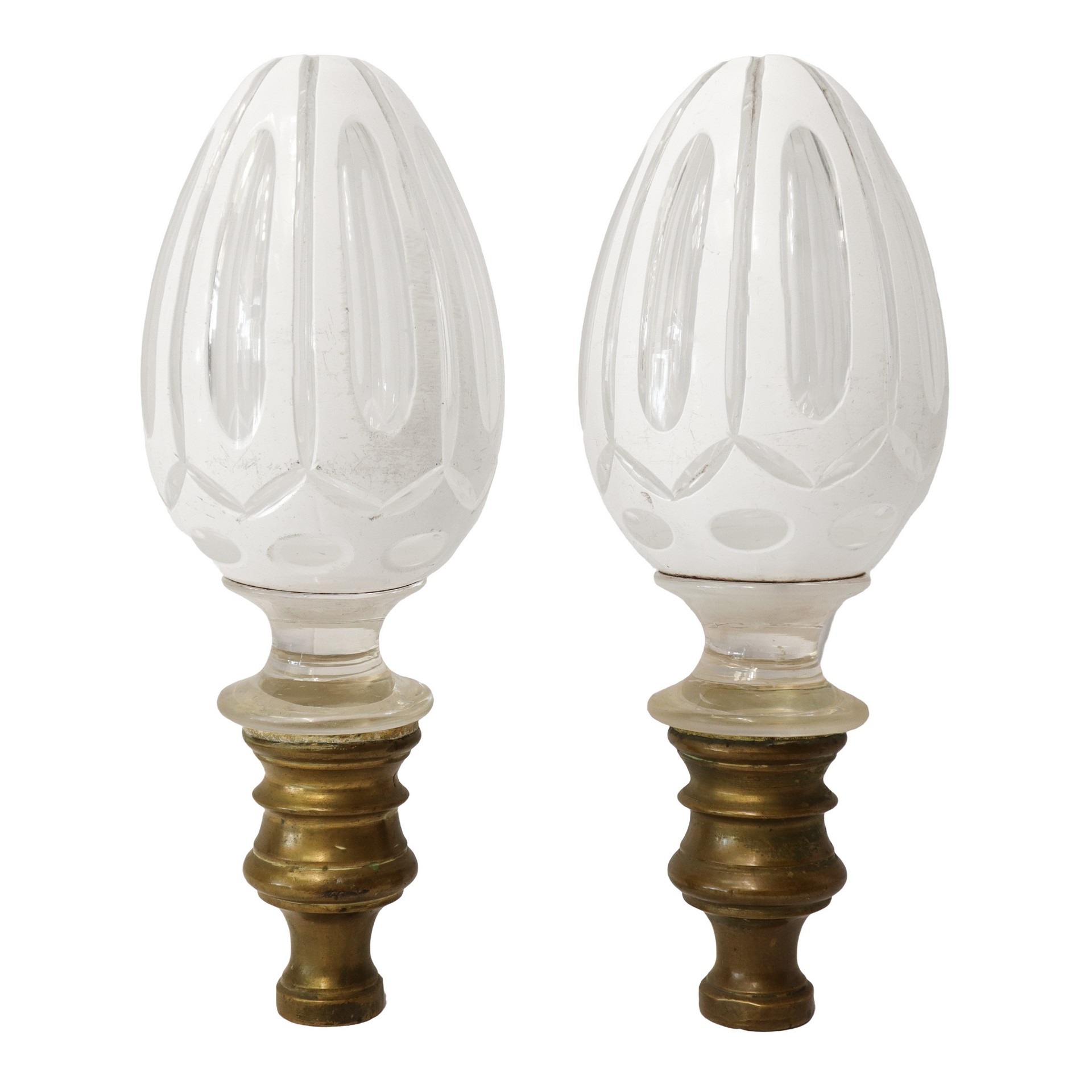 Lot 125 | Coppia di pomoli in vetro bianco lattimo con decorazione trasparente, 19° secolo