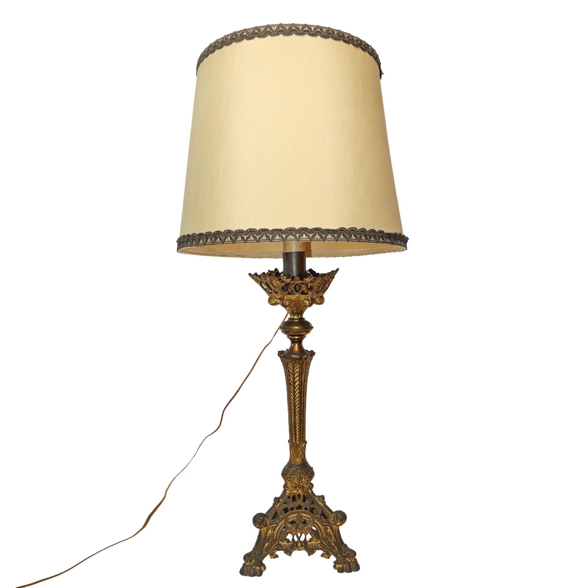 Coppia di lumi con base in metallo dorato, 19° secolo