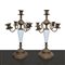 Coppia di candelieri a 5 luci in metallo patinato bronzo e fusto in porcellana bianca, 20° secolo