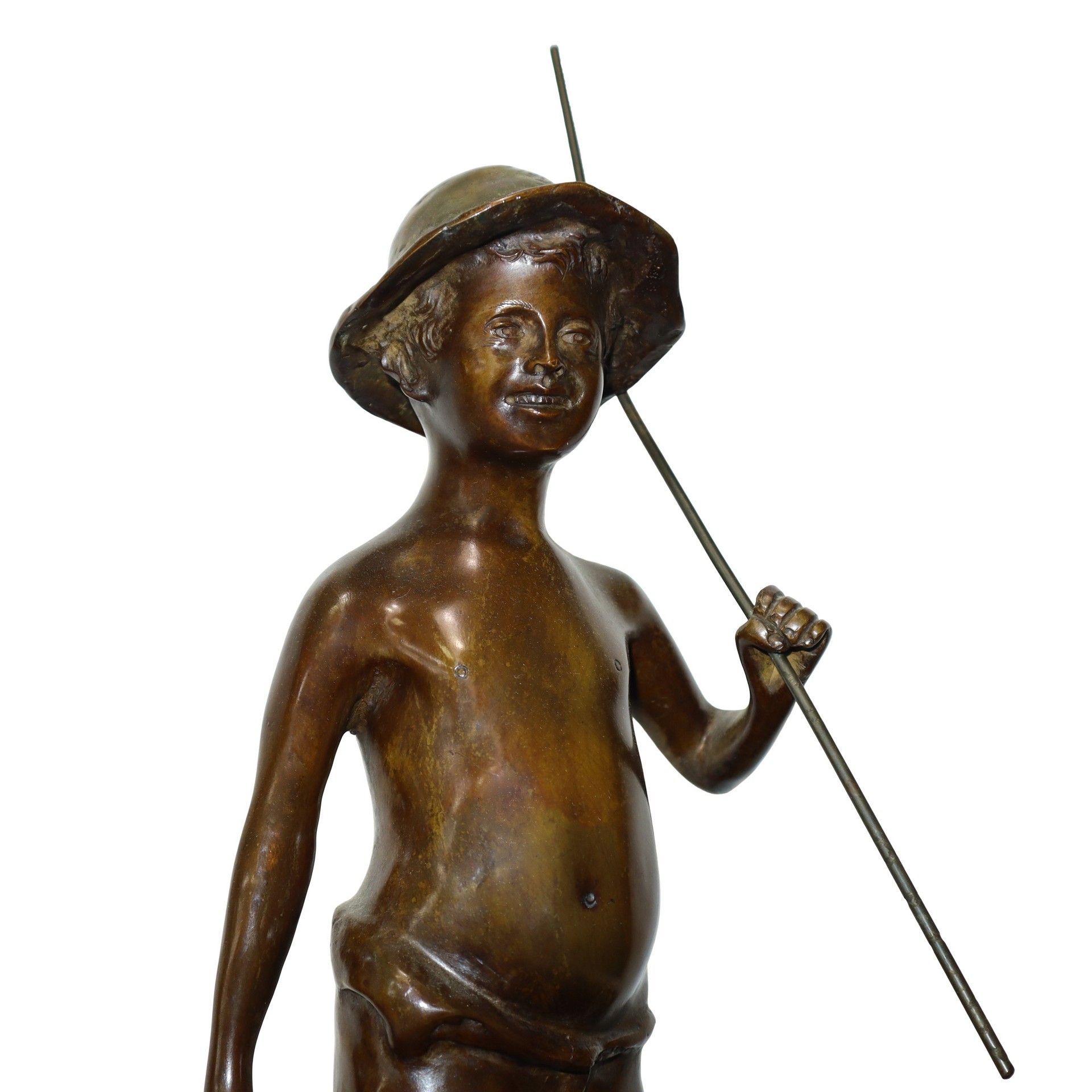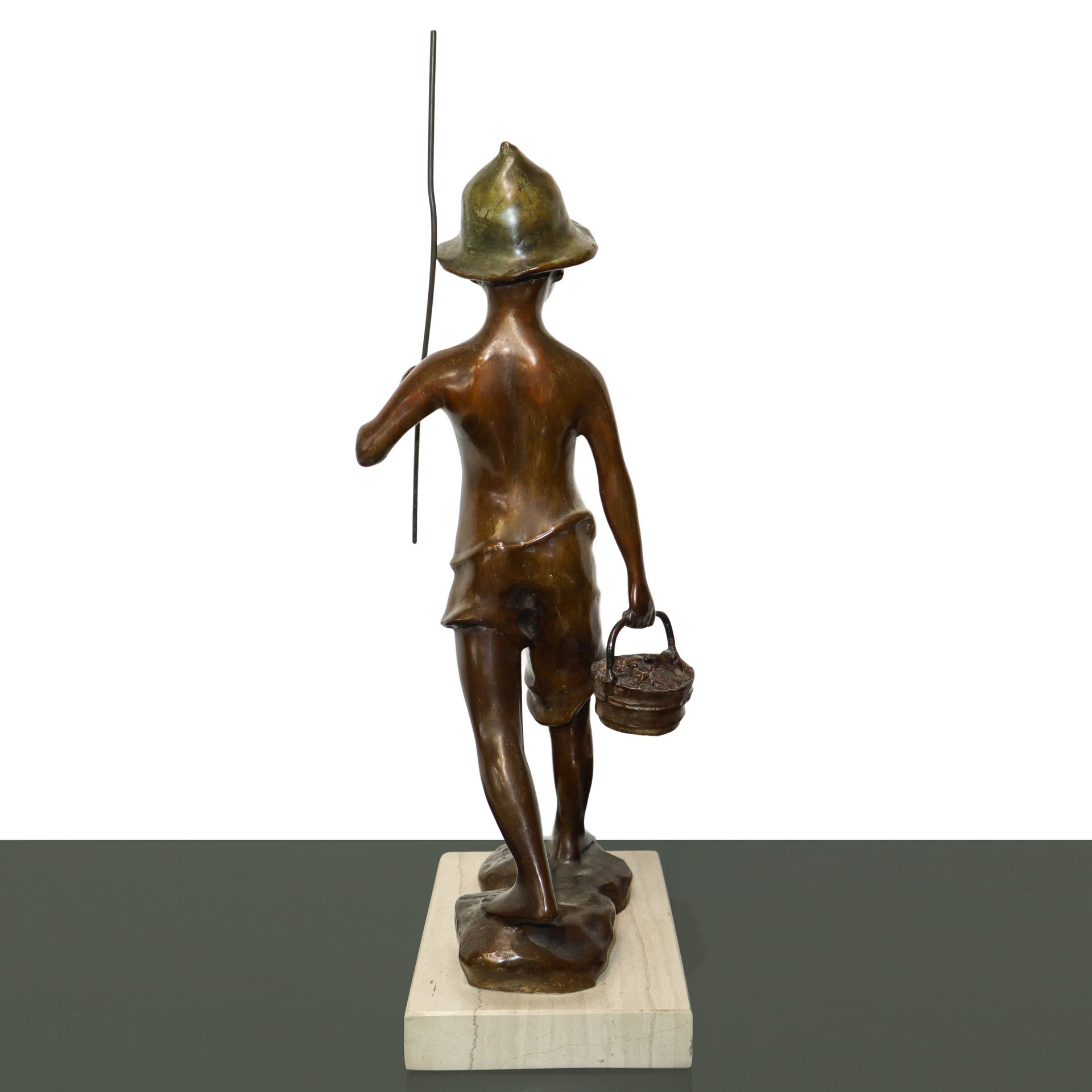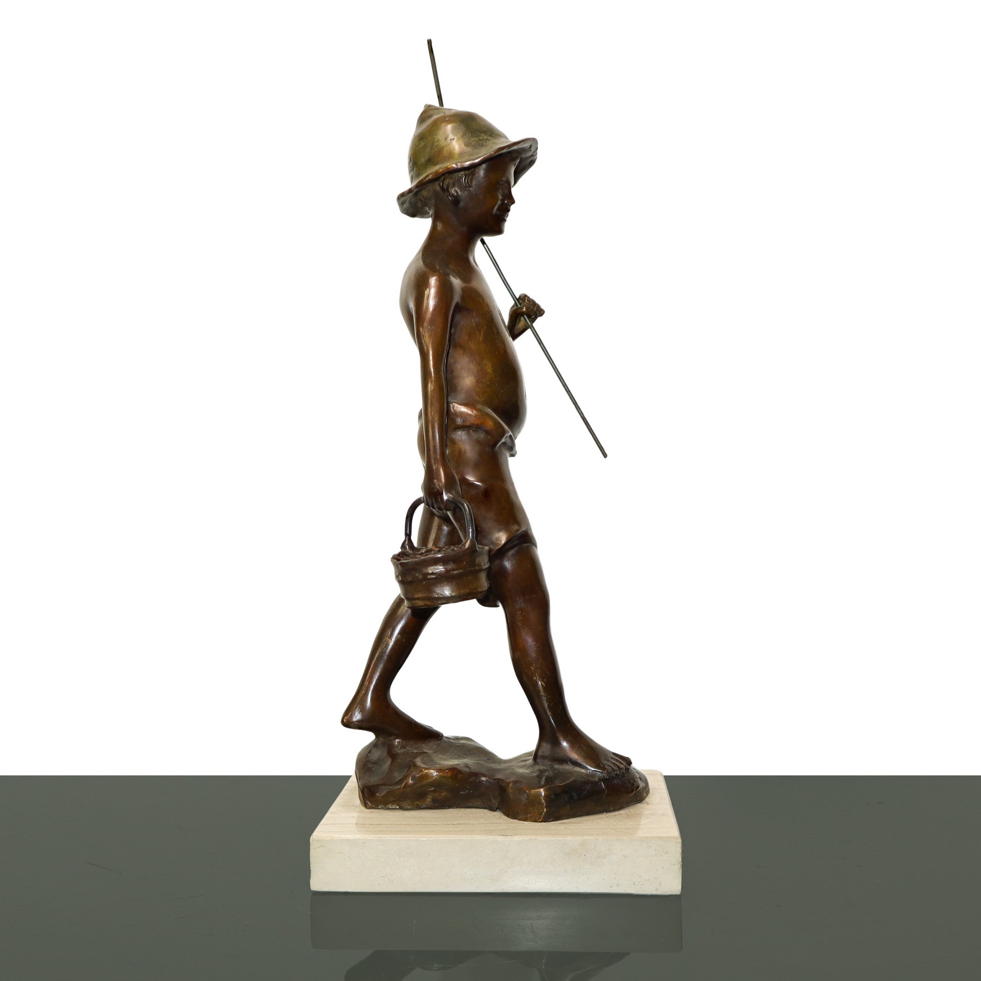 Giovanni De Martino (Napoli 1870 - Napoli 1935) - Pescatoriello con base in marmo h cm 47 Firma dell'autore sulla base della scultura in bronzo Firma dell'autore sulla base della scultura in bronzo