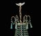 Lampadario a 6 luci struttura in metallo dorato e brindoli a palla in legno verdi