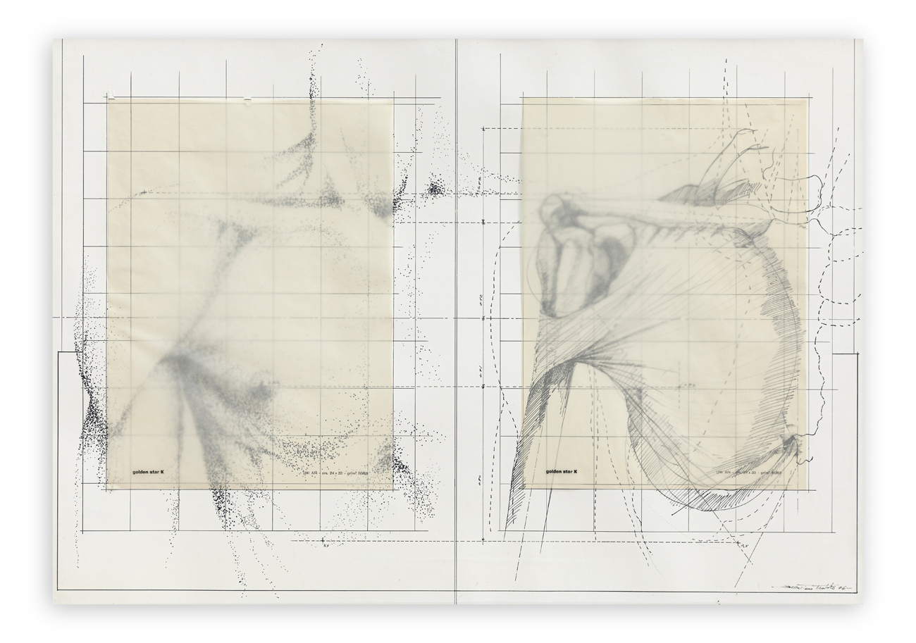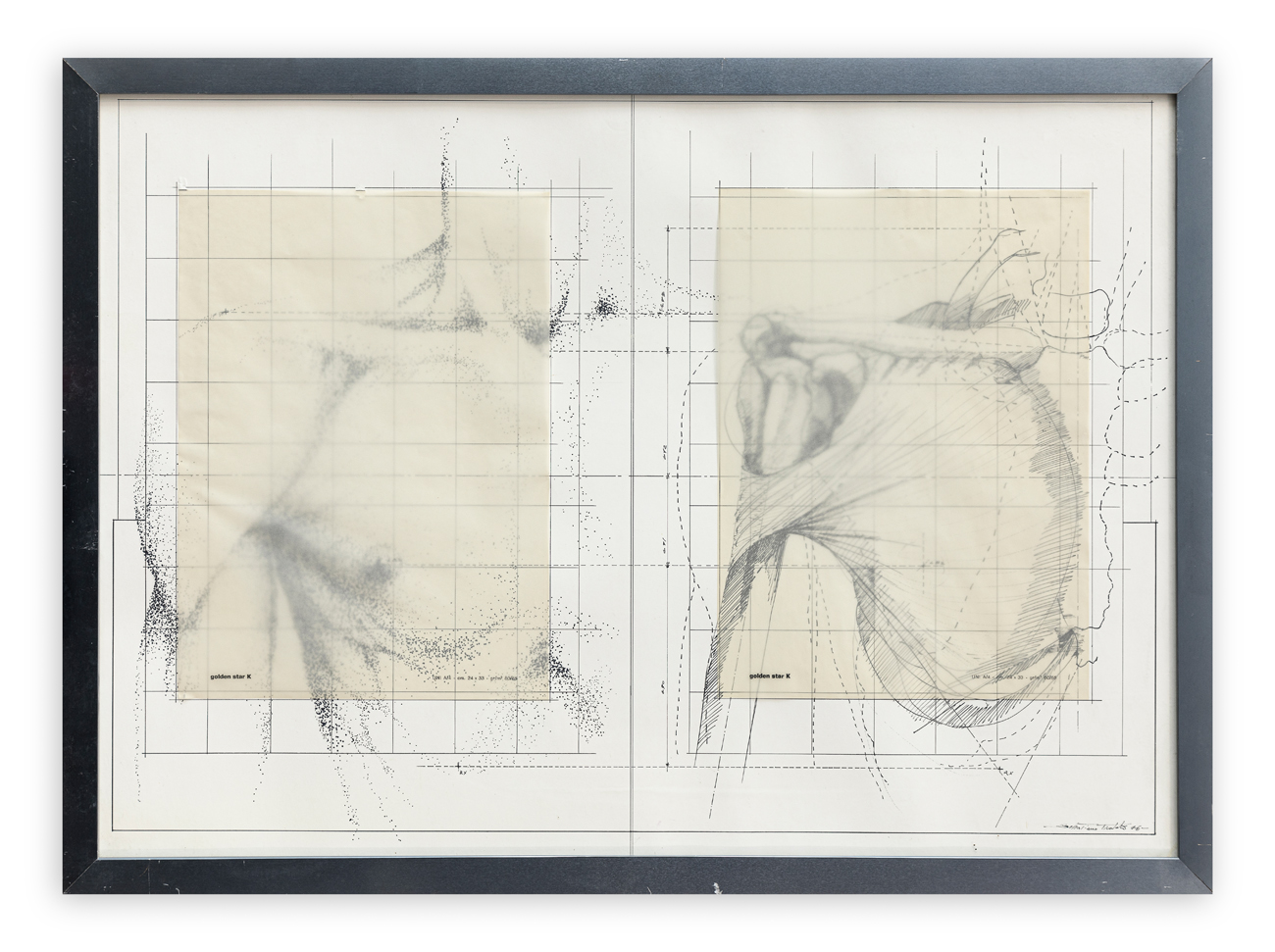 China e grafite su cartoncino e plastiche trasparenti serigrafate sovrapposte